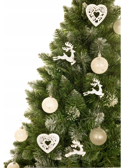 - для декоративного ефекту кінчики хвої покриті білими кристалами та фарбою, що імітує хвою, що померзла від роси