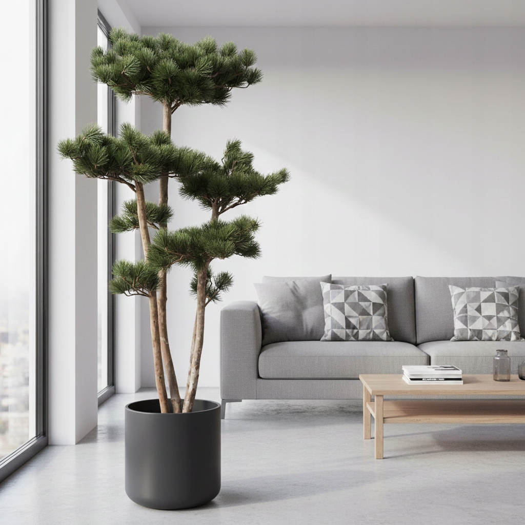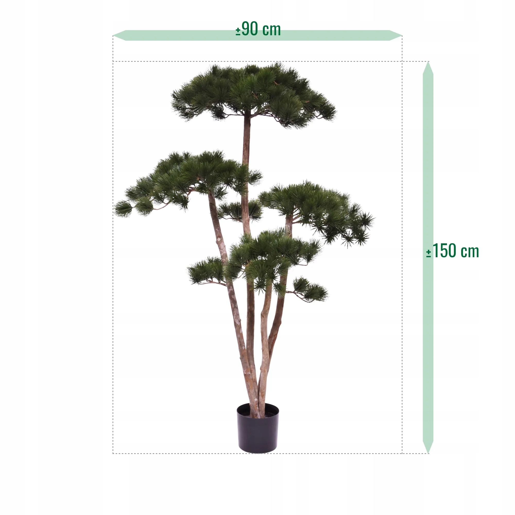 - Вражаюча висота 150 см: Цей вражаючий розмір робить дерево бонсай Pinia 150 центром будь-якої кімнати – вітальні, офісу, ресторану чи залу.