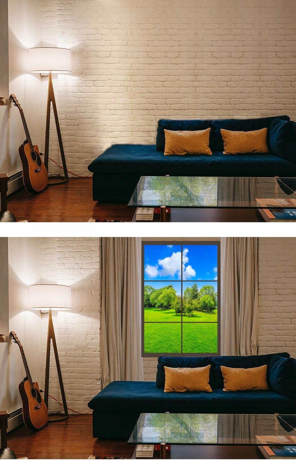 ➡️ Ми усвідомлюємо, що деякі клієнти можуть попросити нас надати іншу фотографію, наприклад, фотографію лісу, озера, гірських вершин, пірамід, пустелі, дерев, морського пляжу тощо Вікно з такими фотографіями буде неприродним, тому що таких краєвидів не буває. Це буде невдала імітація вікна. Наша пропозиція найкраща, тому що запропоновані фотографії гарантують приплив теплого світла, блакитний (небо), білий (хмари) та світло-зелений найкраще асоціюються з сонячним літом.
