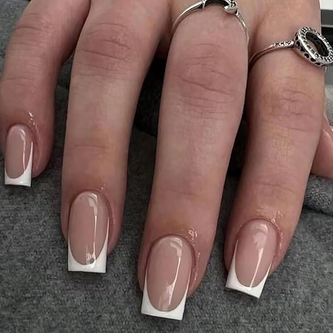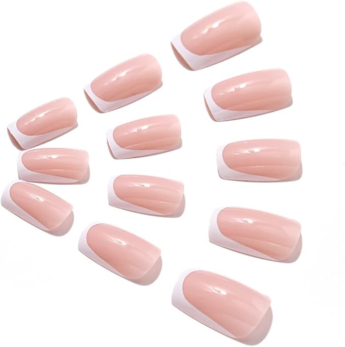 Штучні нігті Brishow Короткі штучні нігті френч рожевий штучна печатка на нігтях 24шт для жінок та дівчат (B)