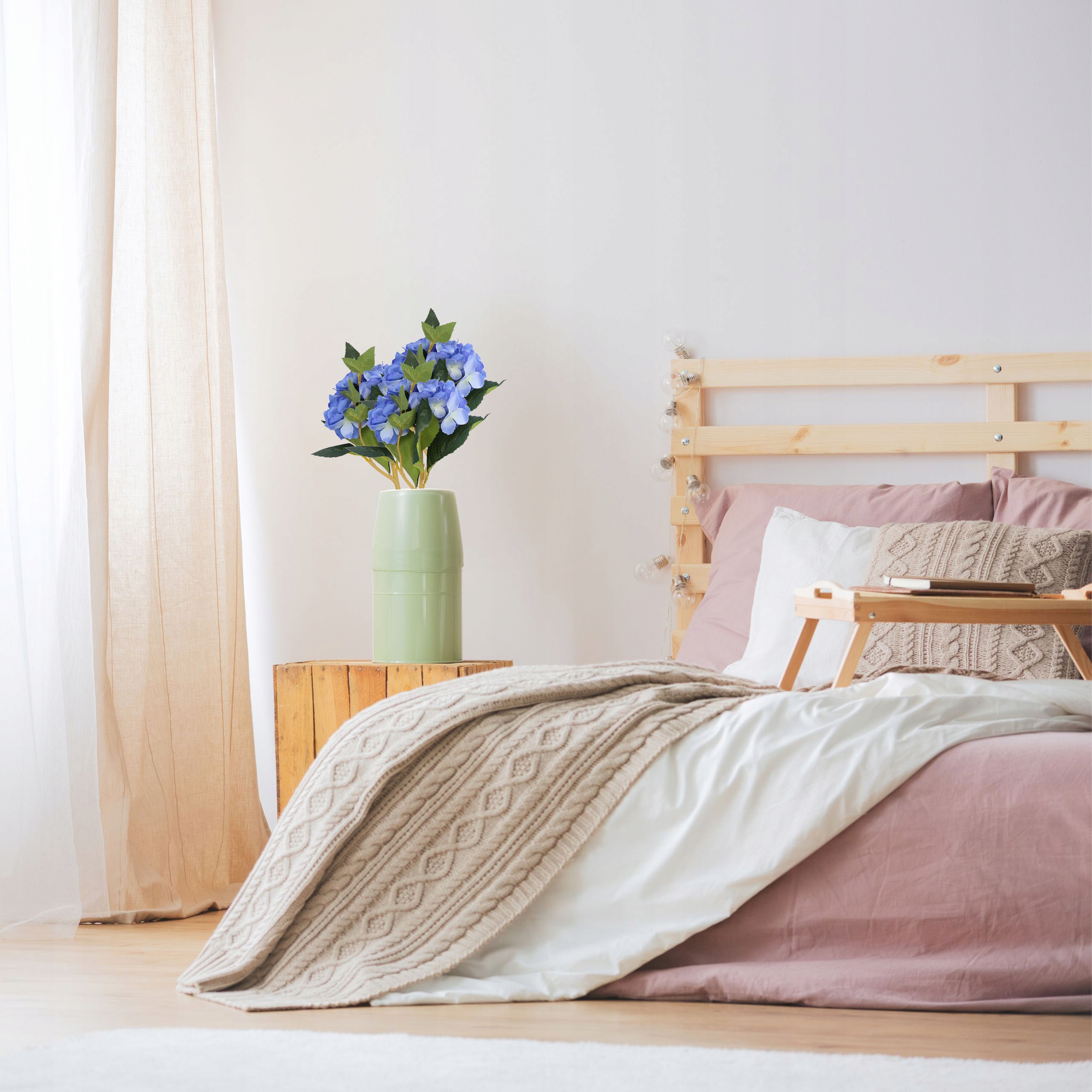 Виготовлена з високоякісних матеріалів, гортензія стійка до вицвітання та деформації, залишаючись красивою цілий рік без необхідності догляду.