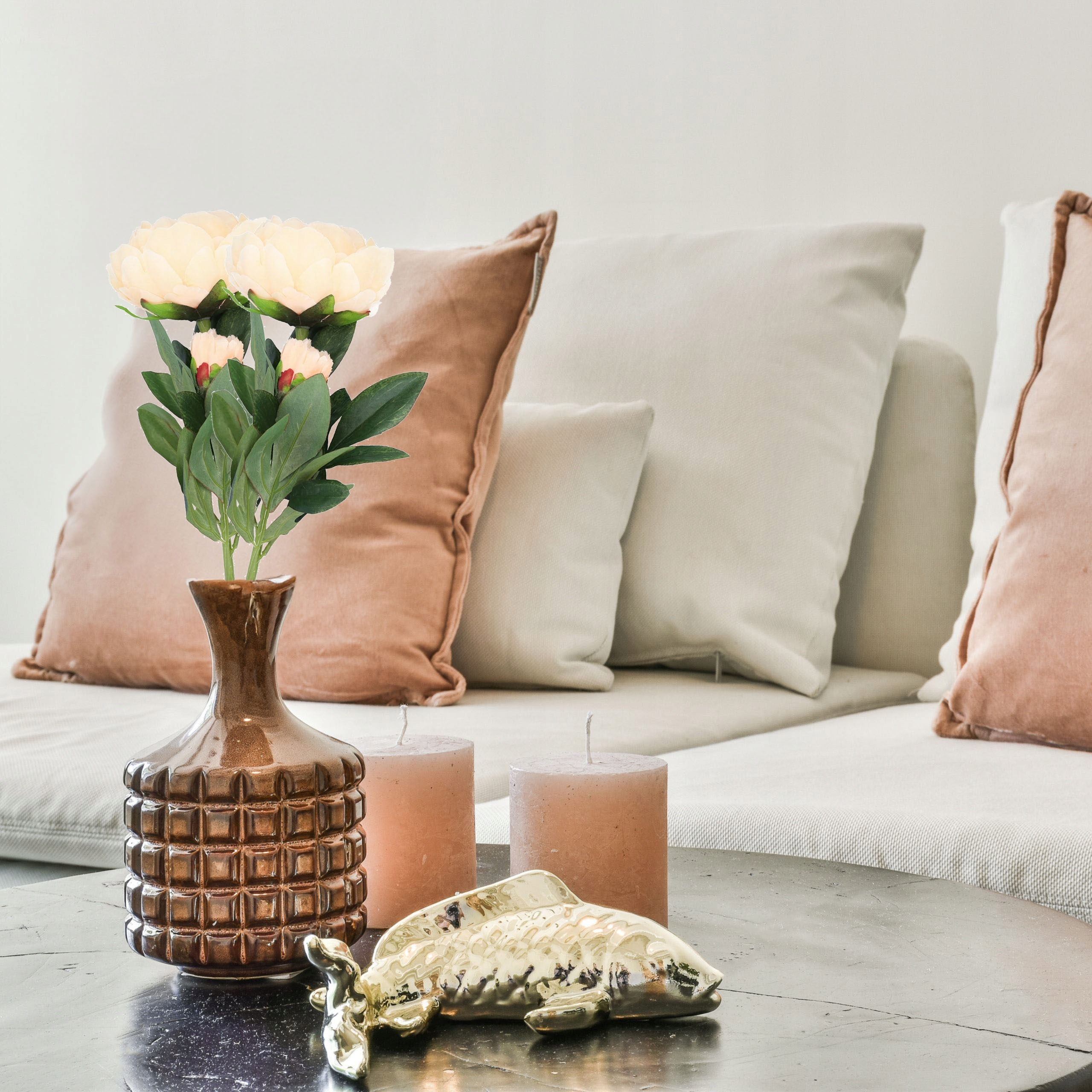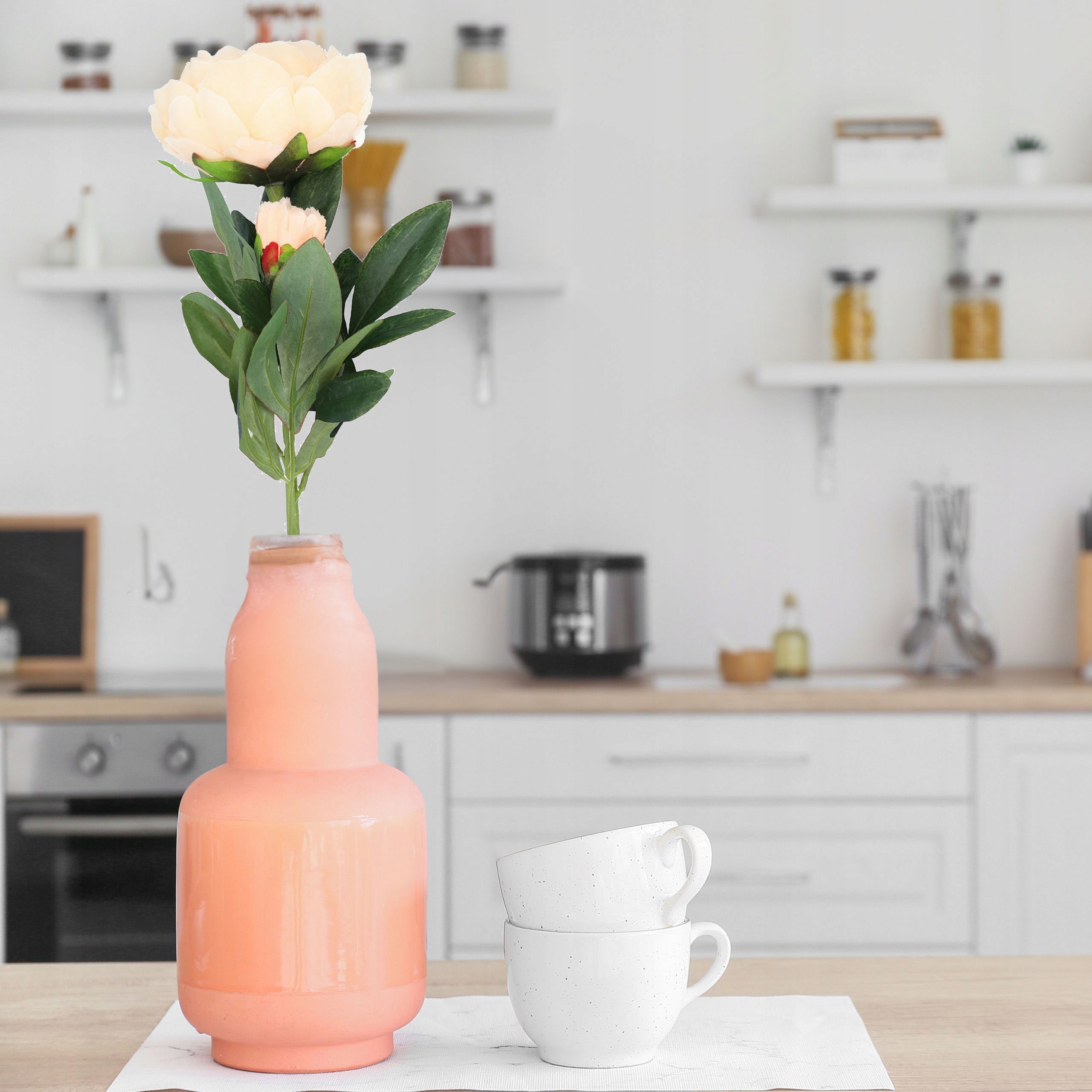 Штучна квітка півонії для букета в кремовій вазі