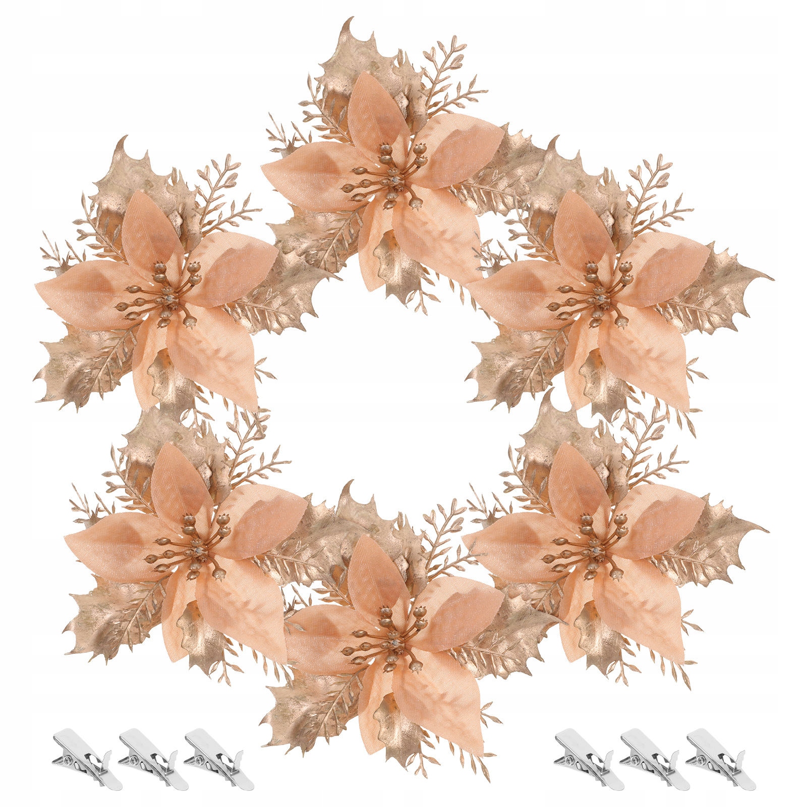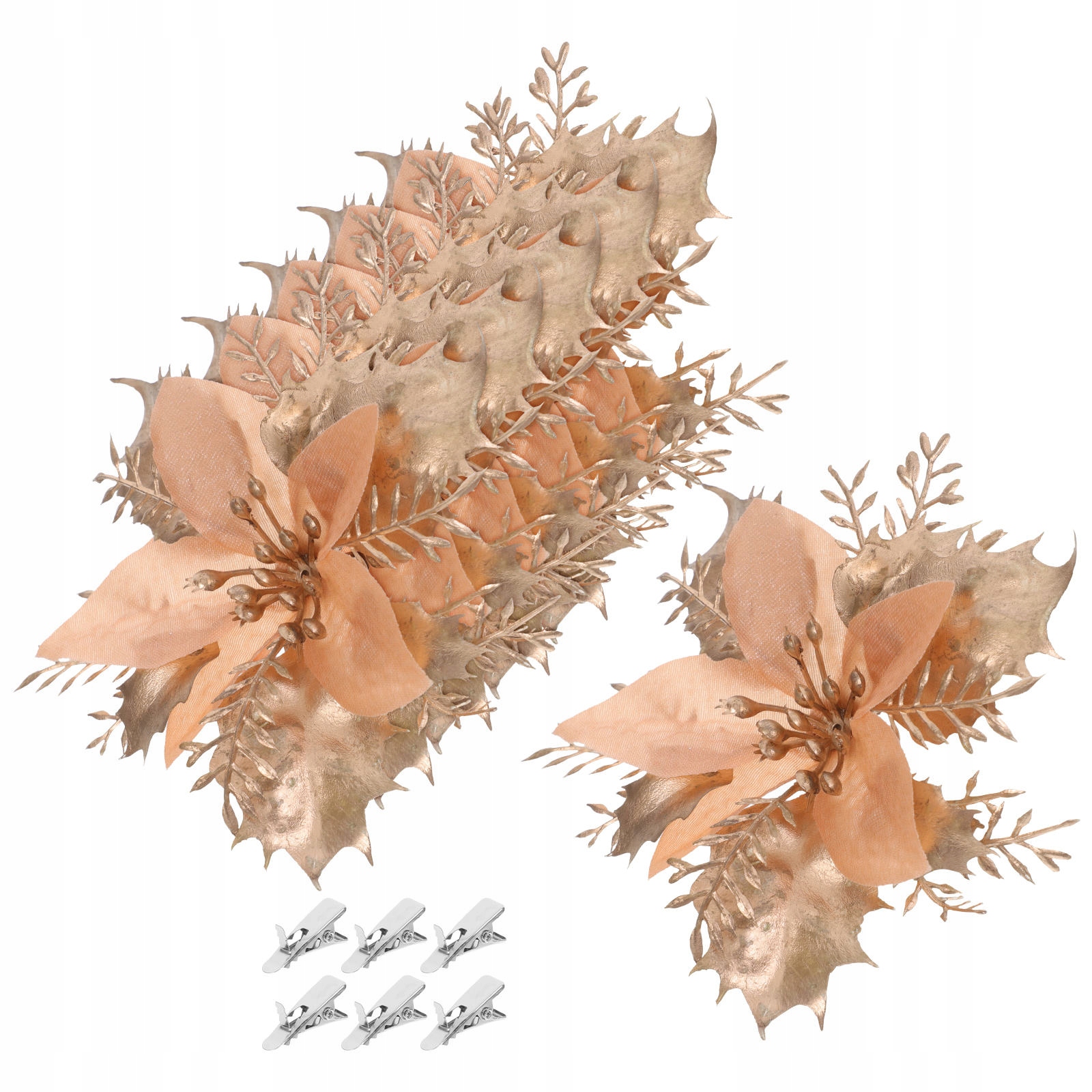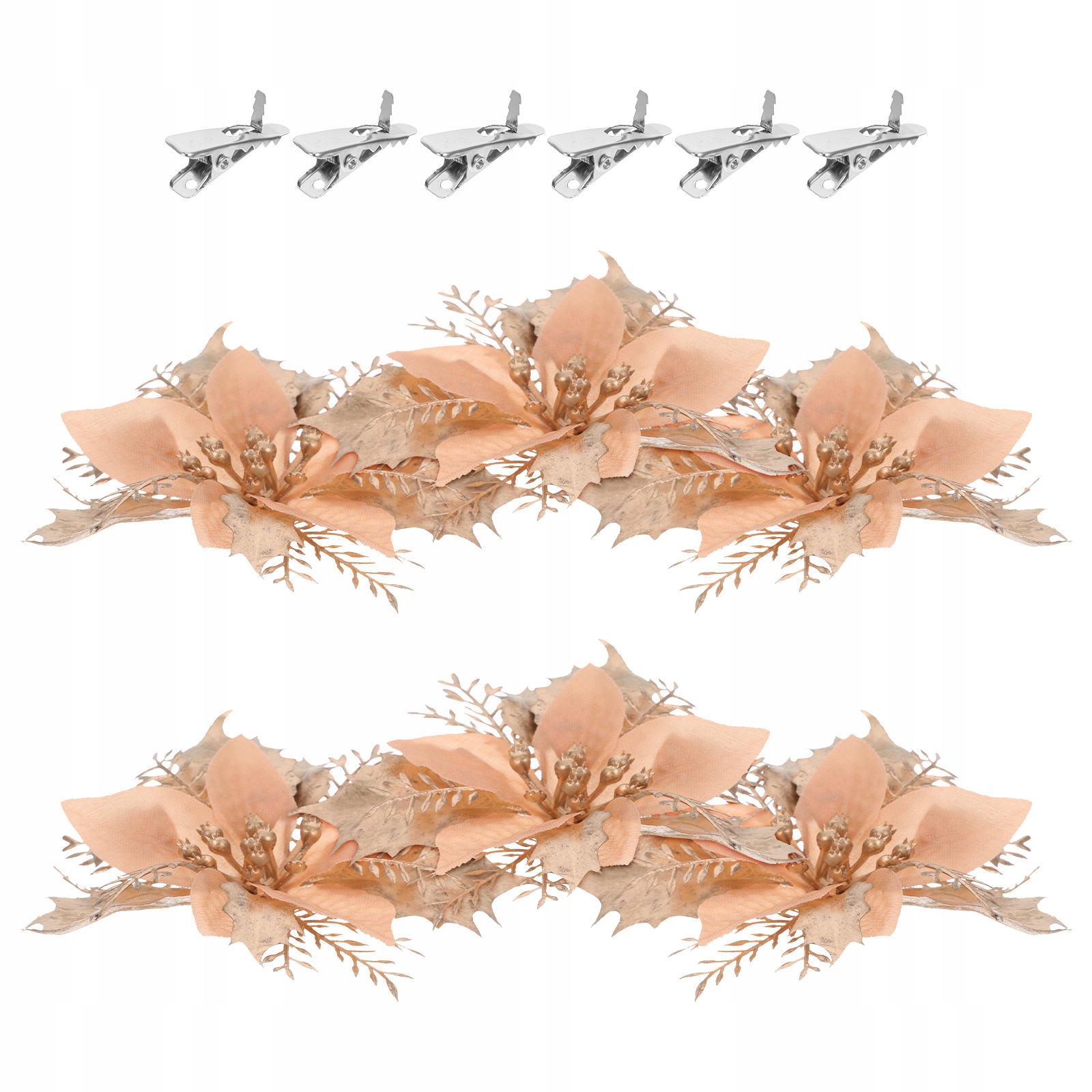 a Christmas holiday: artificial flowers of poinsettia with clips, a clip on the Christmas tree Flower decorations for the Christmas tree Girland Flower Flower Decorations for Christmas party