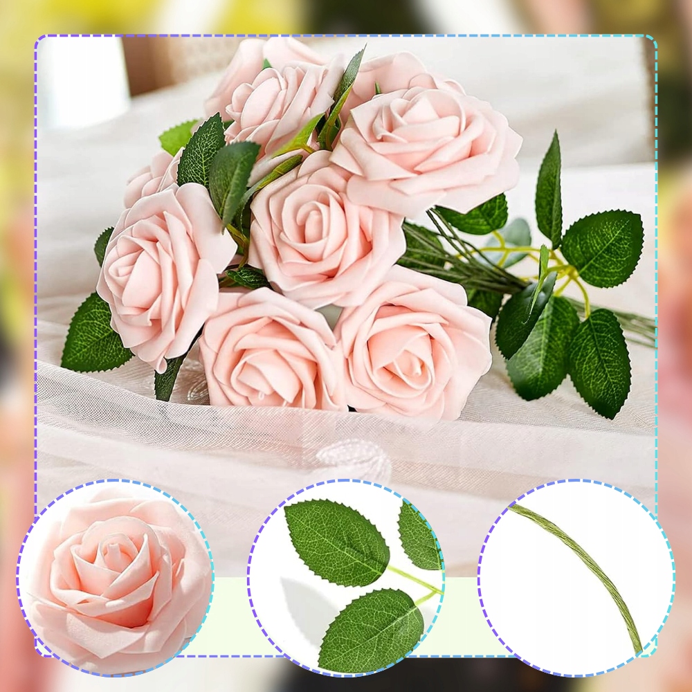 Штучні квіти, троянди з пінопласту - набір букетів 25 штук, пудрово-рожевий