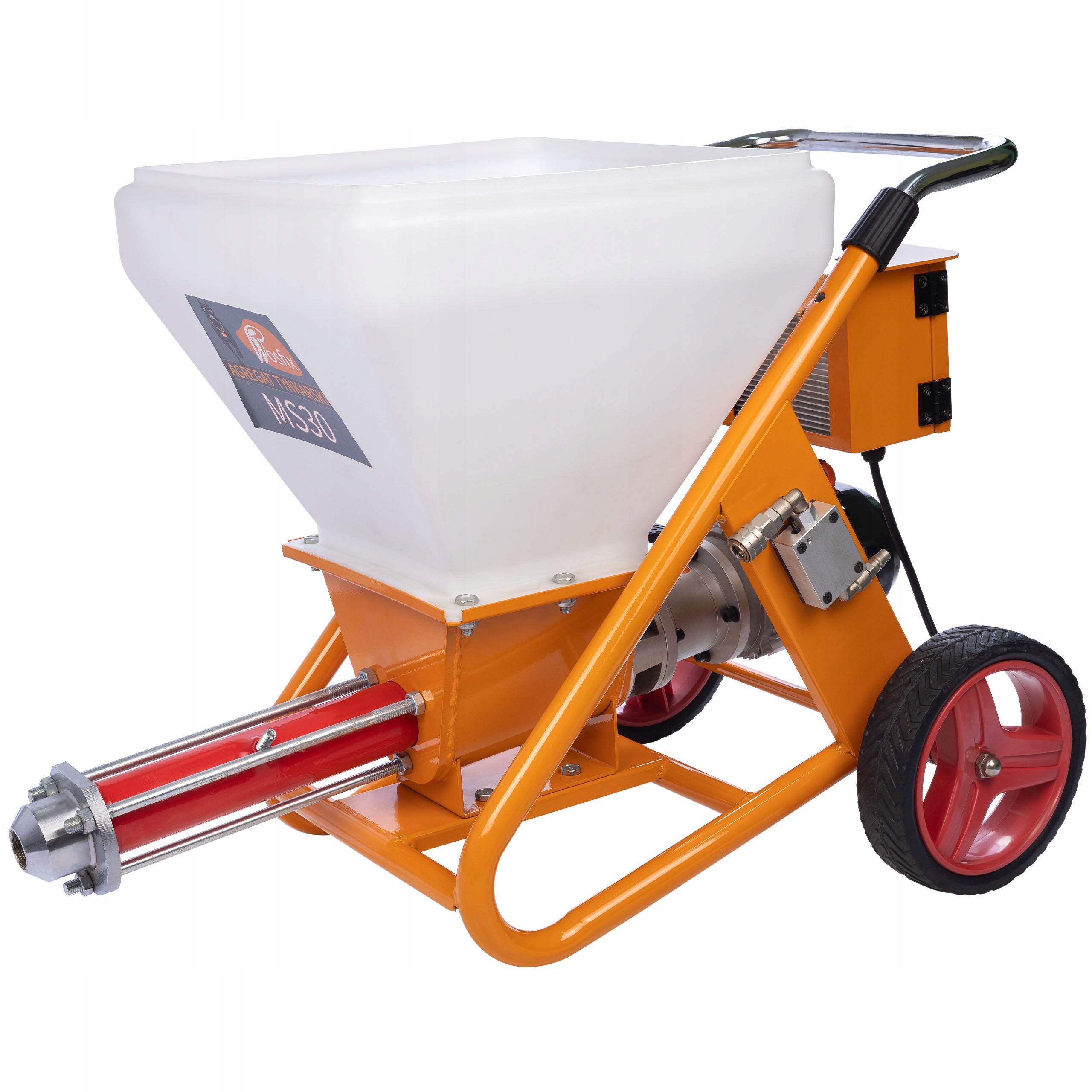 - Безщітковий двигун потужністю 3000 Вт і шнековий насос дозволяють наносити матеріали з зернистістю до 3 мм.