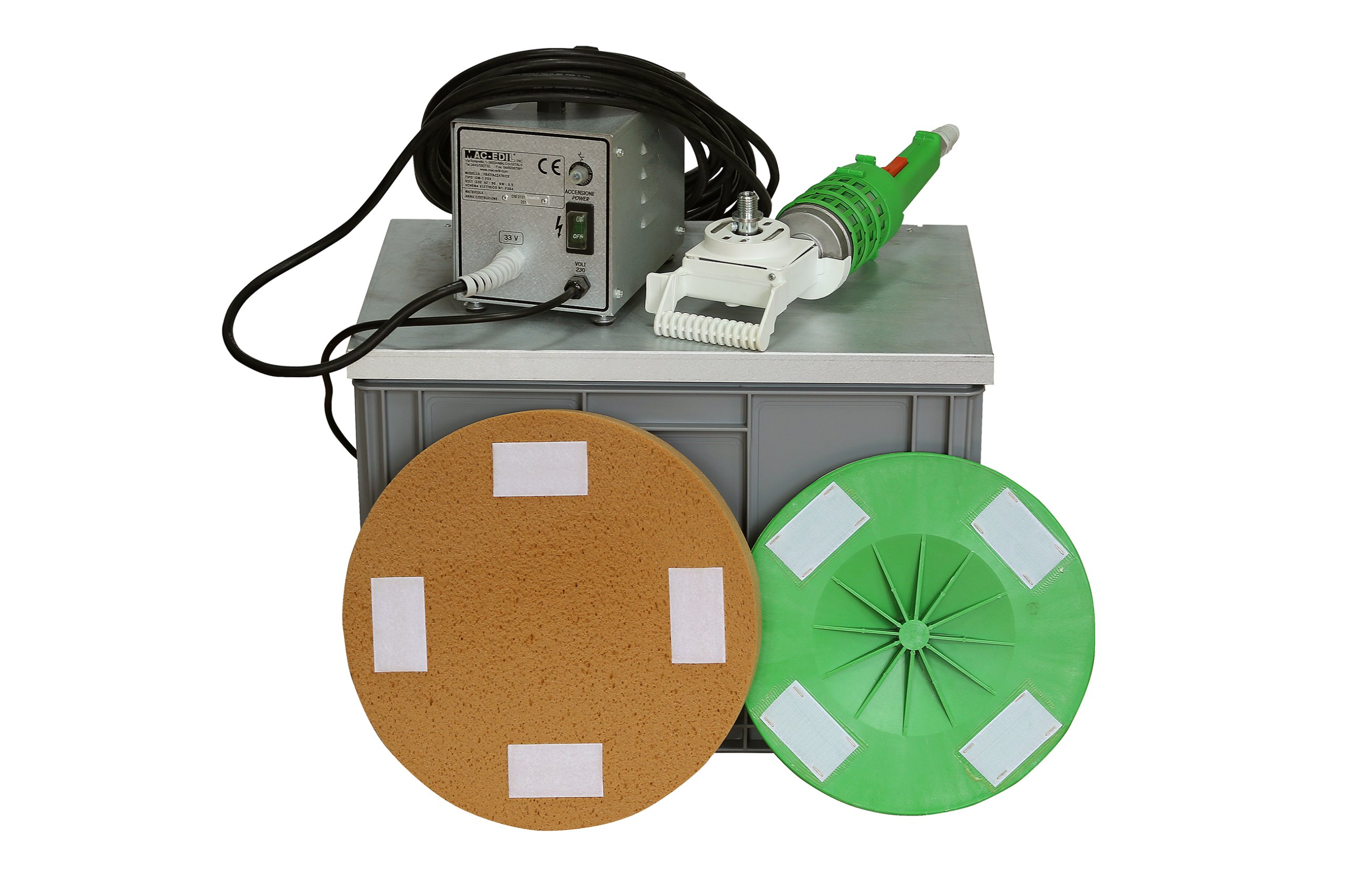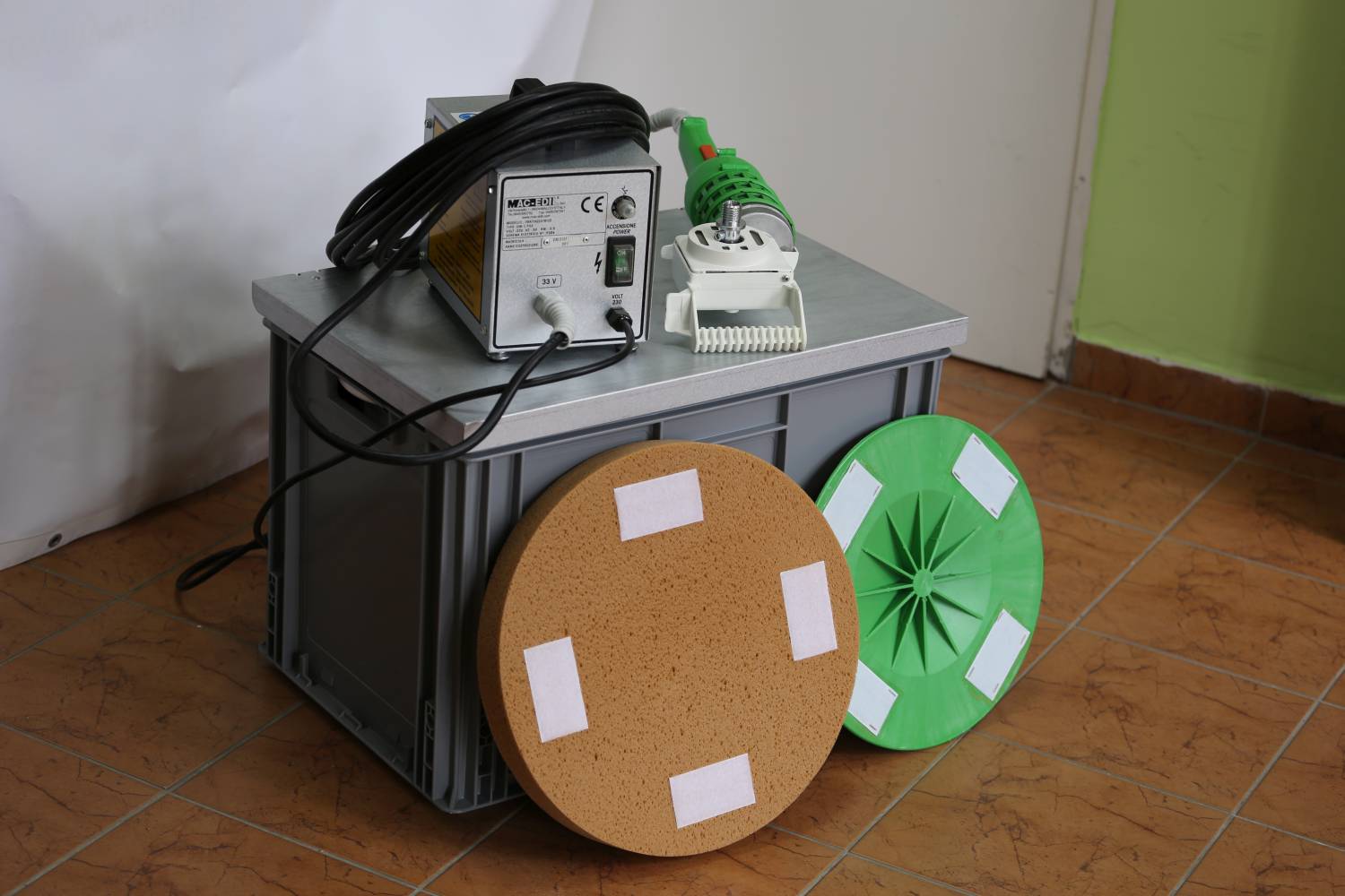 Цей пристрій забезпечує чудову якість і точність, ідеально підходить для розгладження всіх оздоблювальних виробів. Дозволяє проводити попередню і фінішну обробку всіх видів штукатурки з добавками і без. Оберти диска шпателя були розроблені та запатентовані таким чином, щоб фінішна обробка проводилася з максимальною ефективністю та мінімальним зносом. Напрямок обертання зменшує фактичну вагу вузла, який контактує зі штукатуркою.