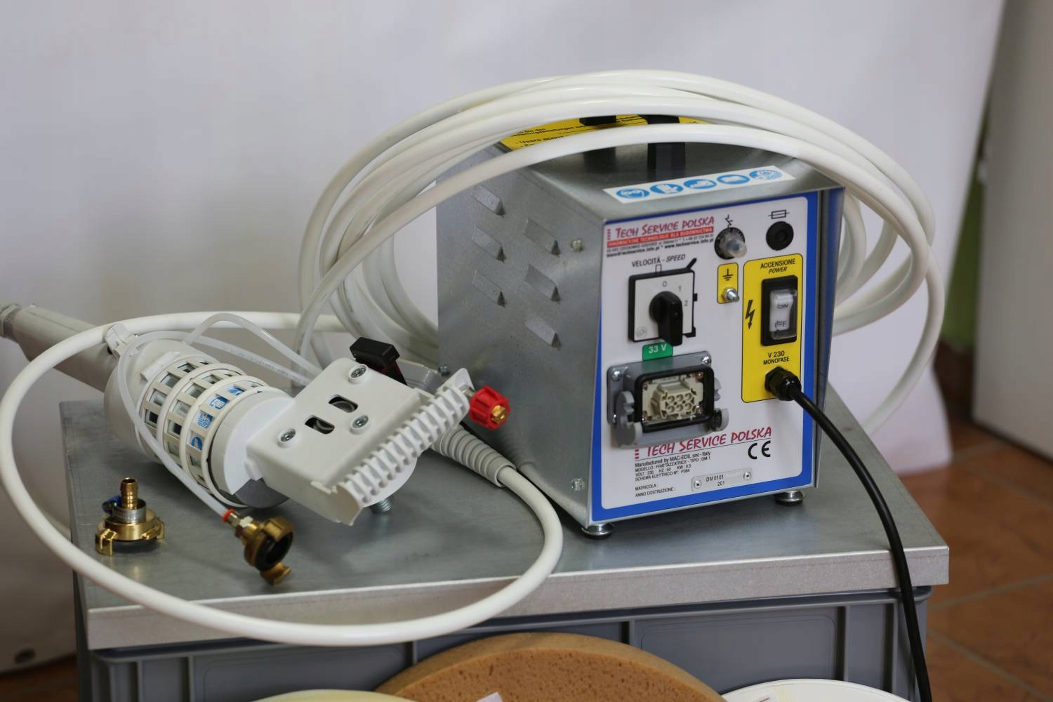 Блока керування з трансформатором: завдяки перетворенню напруги 230 В у коробці до 37 В на робочому блоці кельми, працювати з нею набагато легше і точніше завдяки зниженню вібрації.