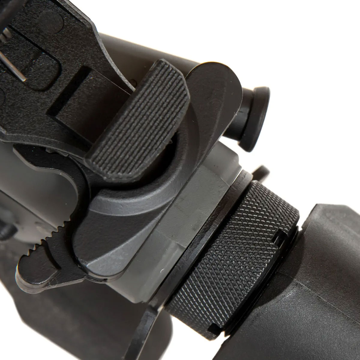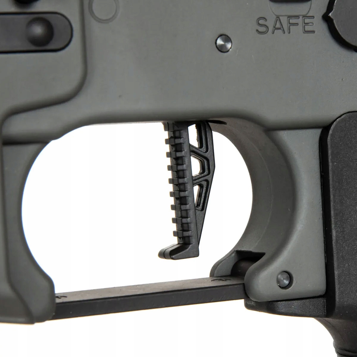 Завдяки регульованому прикладу b> можна адаптувати довжину репліки. Вертикальна ручка допомагає стабілізувати репліку під час зйомки. Крім того, на вертикальну рукоятку, пістолетну рукоятку та затильник нанесено протиковзку текстуру. Вихідний пристрій встановлено на різьбу CCW 14 мм.