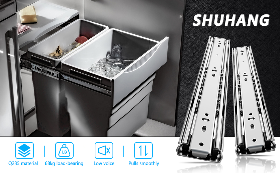антикорозійне, гладке і тихо: було використано високоякісне оцинковане покриття цинку. Шар гальванізації запобігає пряму контакт повітря зі сталевою рейкою та запобігає іржі та окисленню. Високі якості гумові прокладки запобігають удару під час використання, а суцільні сталеві кульки можуть зменшити шум.