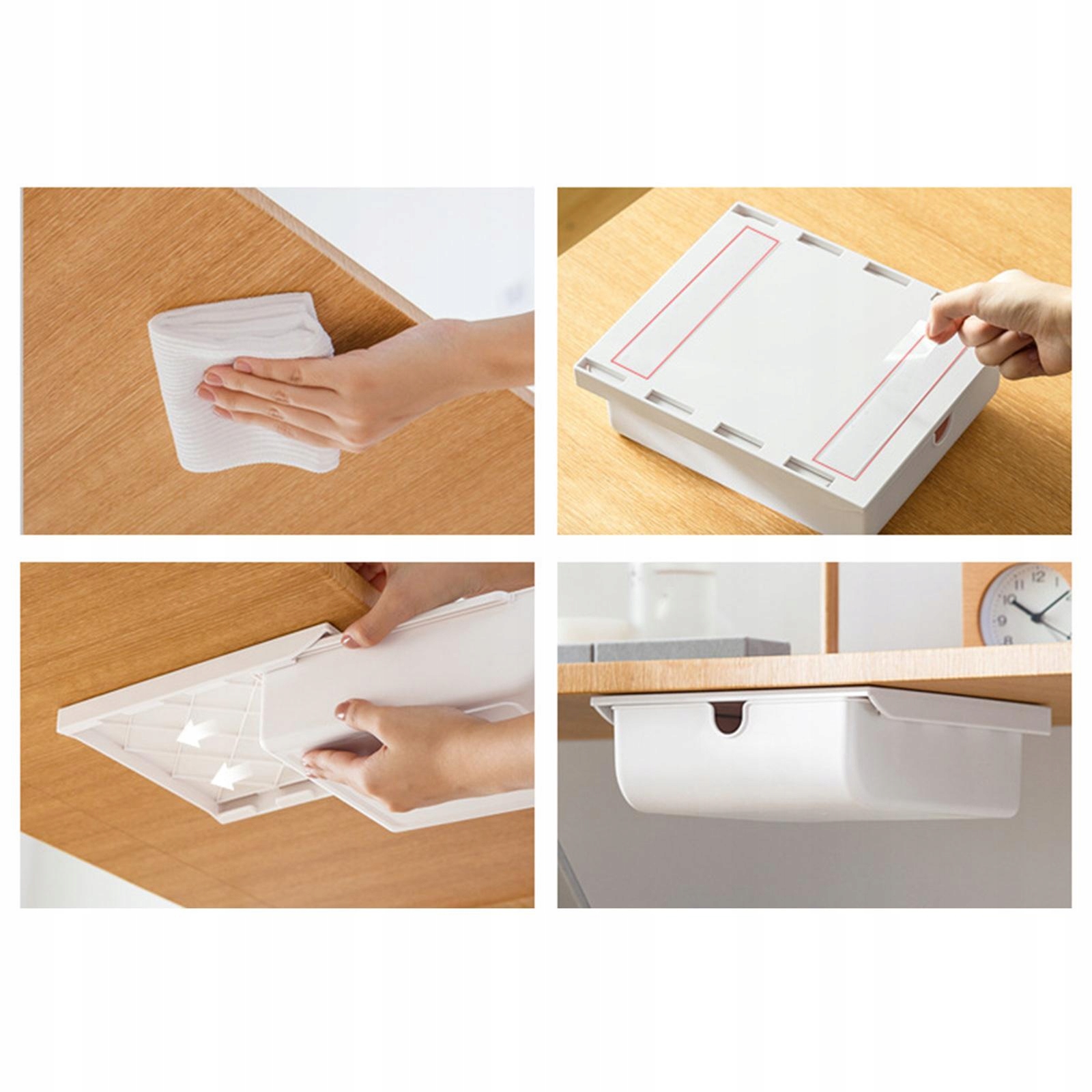 Застосування: прихований у нижній частині робочого столу, не займаючи місця, може зберігати різні предмети, такі як телефон, ручки, олівці , клей, гумки, гумки, паперові рушники, ножиці, чудовий вибір для домашнього зберігання.