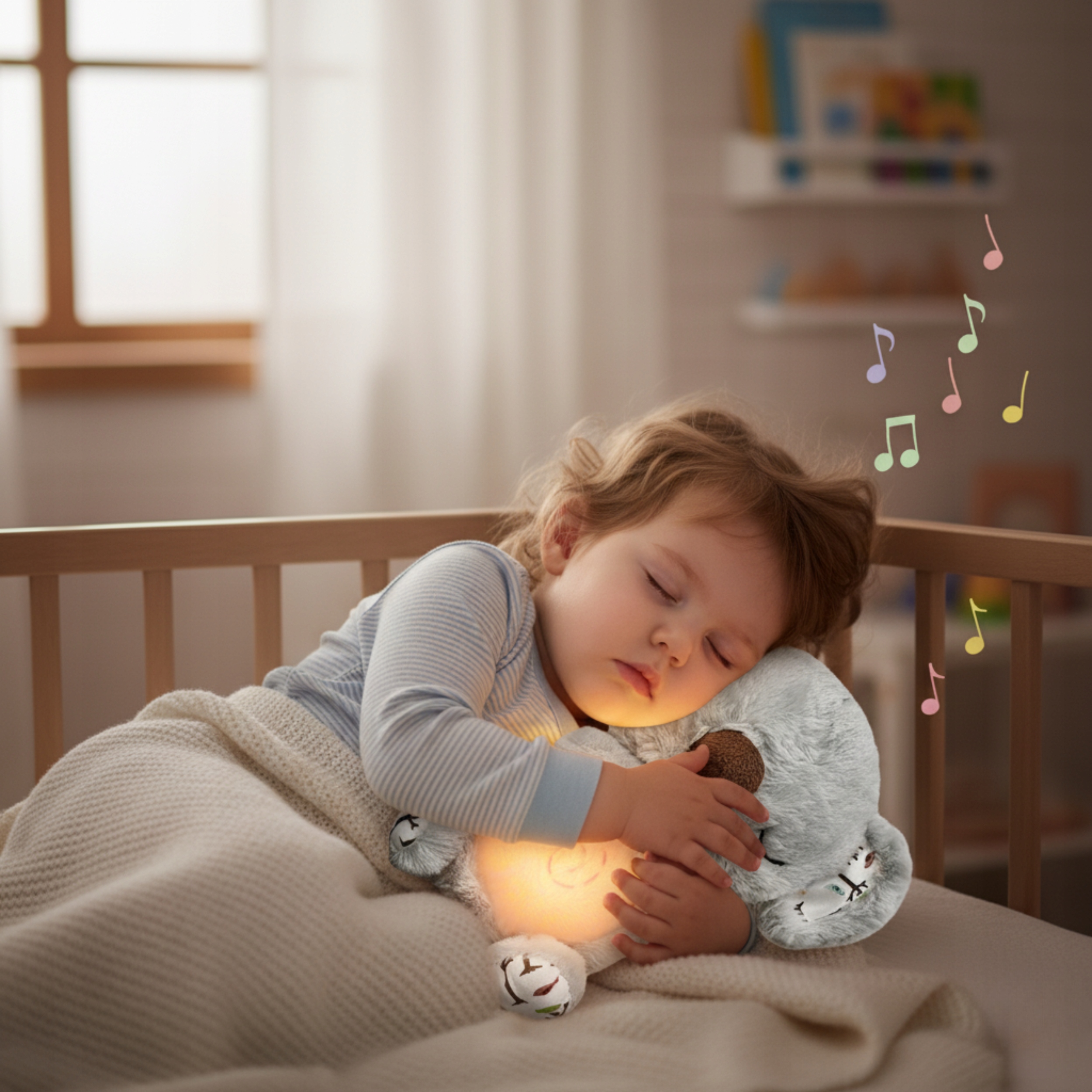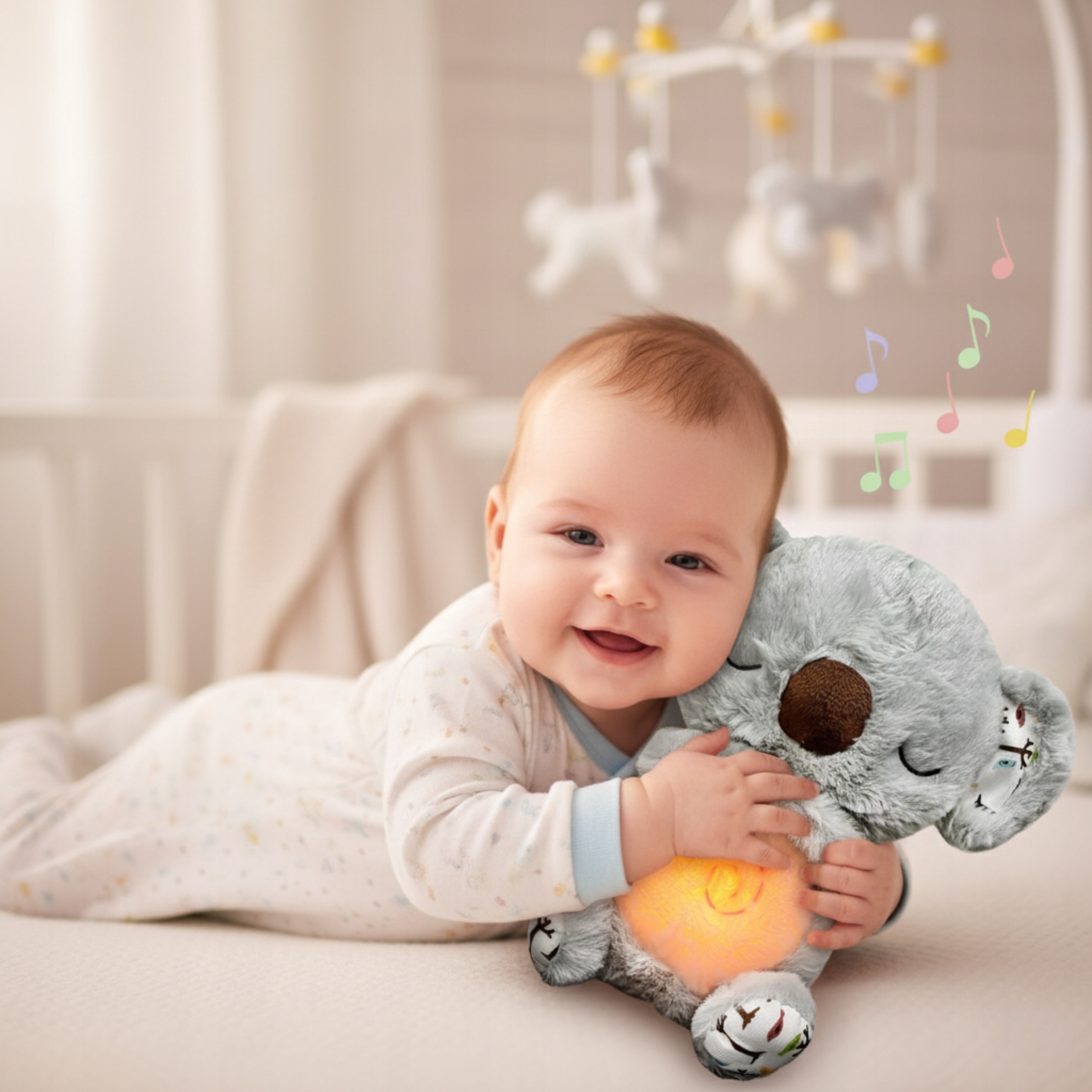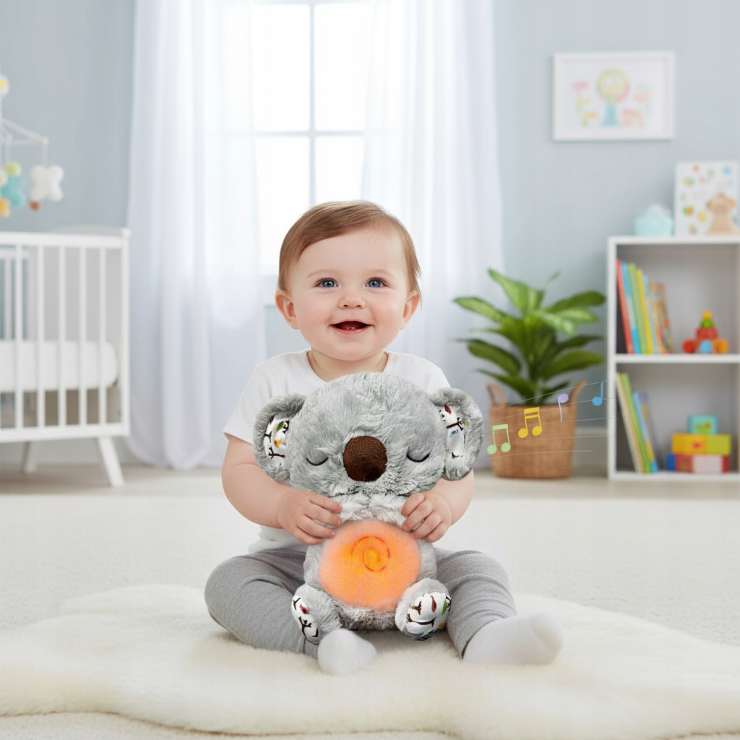 Плюшева коала з функцією дихання, світлом і мелодіями – заспокійлива м’яка іграшка для дітей