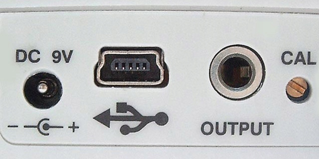 Пристрій має порт калібрування, вихідний роз’єм 3,5 мм зі змінним струмом: 1 В/100 Ом або постійним струмом: 10 мВ/дБ/ Характеристики 1kΩ дозволяють підключити зовнішній реєстратор або осцилограф, порт USB для підключення глюкометра до ПК і зовнішню розетку живлення.