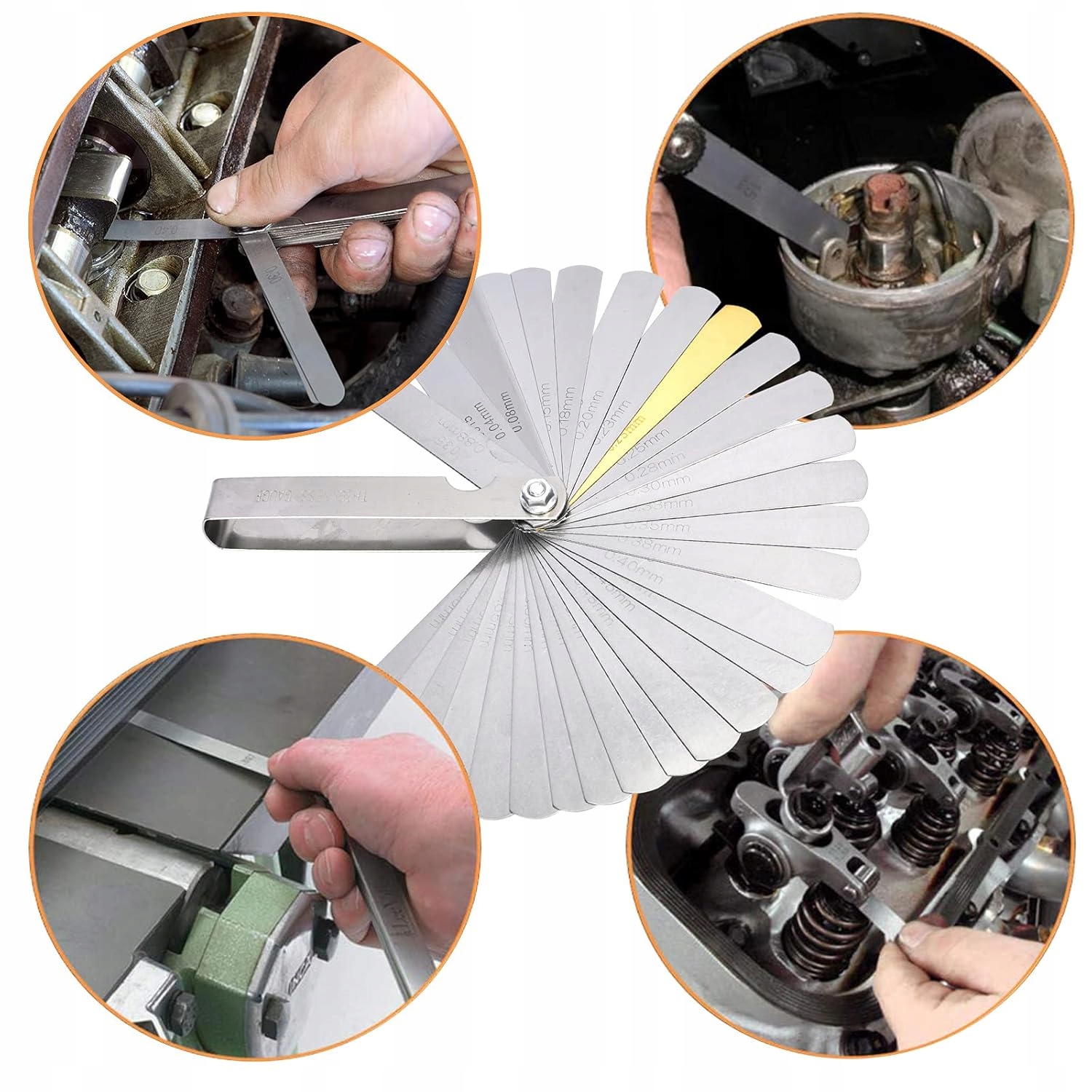 - Легка ідентифікація: подвійне маркування в метричній та британській системах від 0,04 мм до 0,88 мм. Розміри вигравірувані на щупі для легкої ідентифікації.