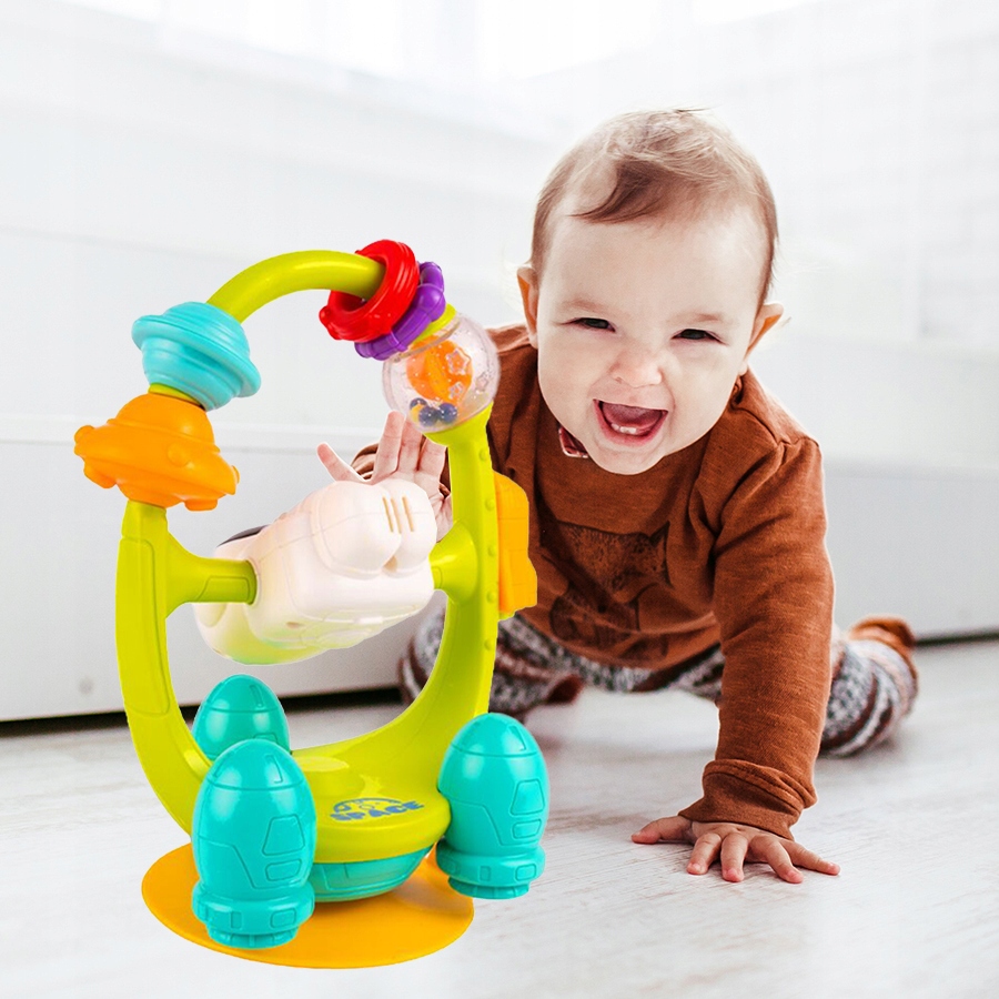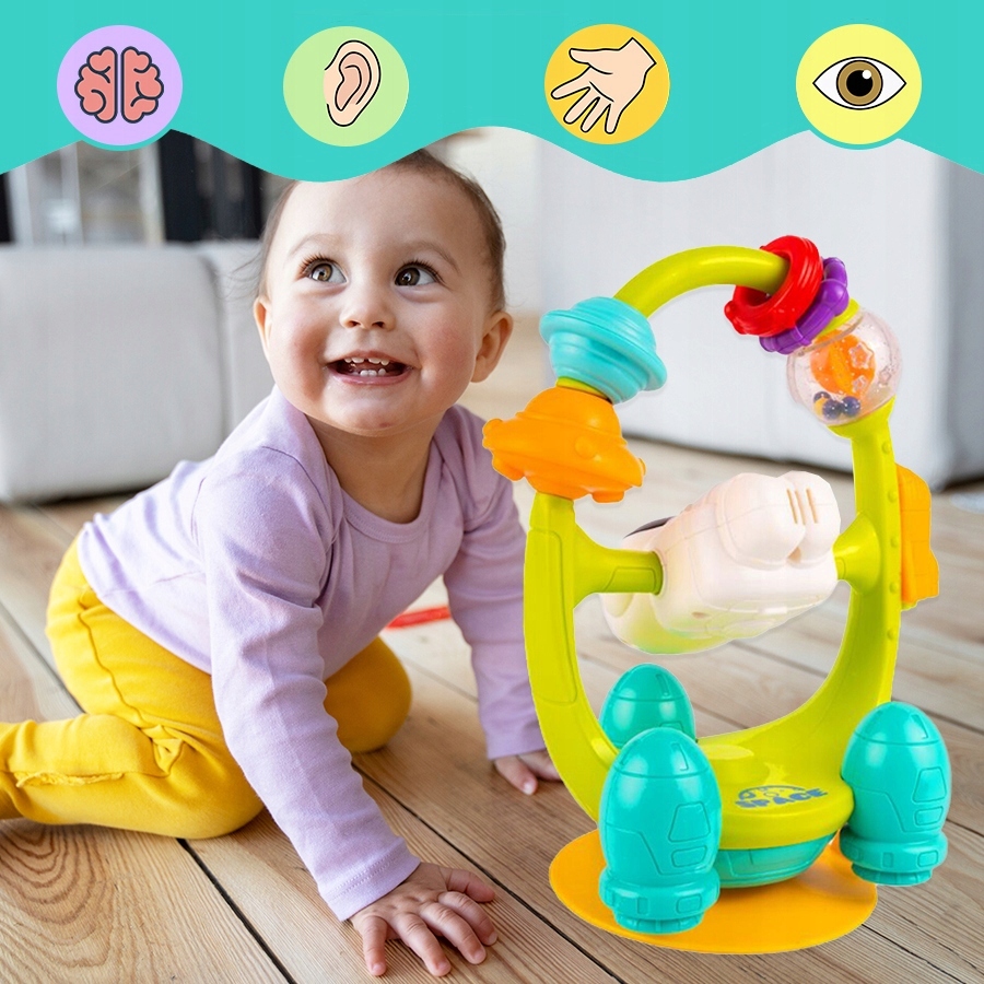 Інтерактивна храповка з присосною чашкою - це барвиста і смішна іграшка, присвячена наймолодшим дітям. Ратч оснащений різними сенсорними елементами, такими як вкладки, кнопки та намистини, які заохочують дитину торкатися, обертатися та досліджувати. Крім того, іграшка має численні звукові та легкі ефекти, які, безумовно, привернуть увагу кожного малюка.