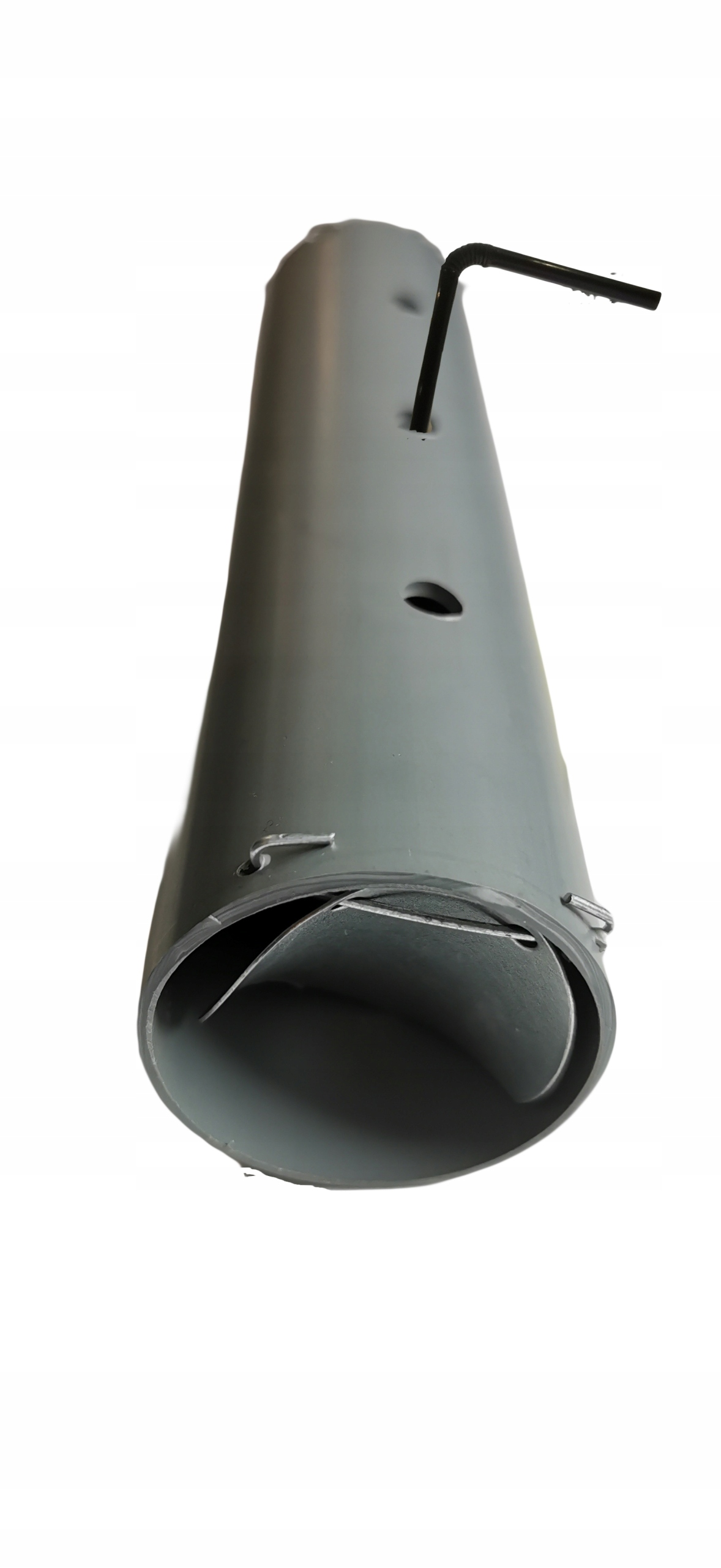 Пастка виготовлена з труби ПВХ із засувками, встановленими з обох боків. Пастку слід розмістити в коридорі, яким кріт пересувається під землею.