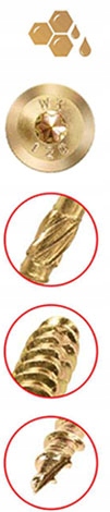 - Воскове покриття: спеціальне воскове покриття, нанесене під час виробничого процесу, значно зменшує крутний момент, необхідний для закручування гвинта. Це робить установку швидшою та легшою, а також значно зменшує споживання енергії, що особливо важливо для інструментів з акумуляторним живленням.