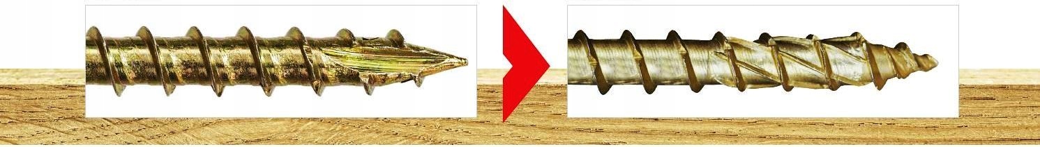 Додаткові витки на вістрі дозволяють швидше «зловити» деревину на першому етапі закручування. Ця перевага особливо важлива у випадку з’єднань, де важко затягнути гвинт. Подвійна нитка дозволяє нам досягти того самого ефекту з набагато меншим тиском.