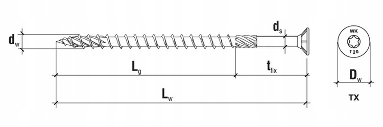 - Гвинти виготовлено відповідно до стандарту PN-EN 14592-2008 Цей європейський стандарт визначає вимоги та методи випробування щодо матеріалів, геометрії, міцності, жорсткості та довговічності (тобто захисту від корозії) кріплень, які використовуються в несучих дерев’яних конструкціях