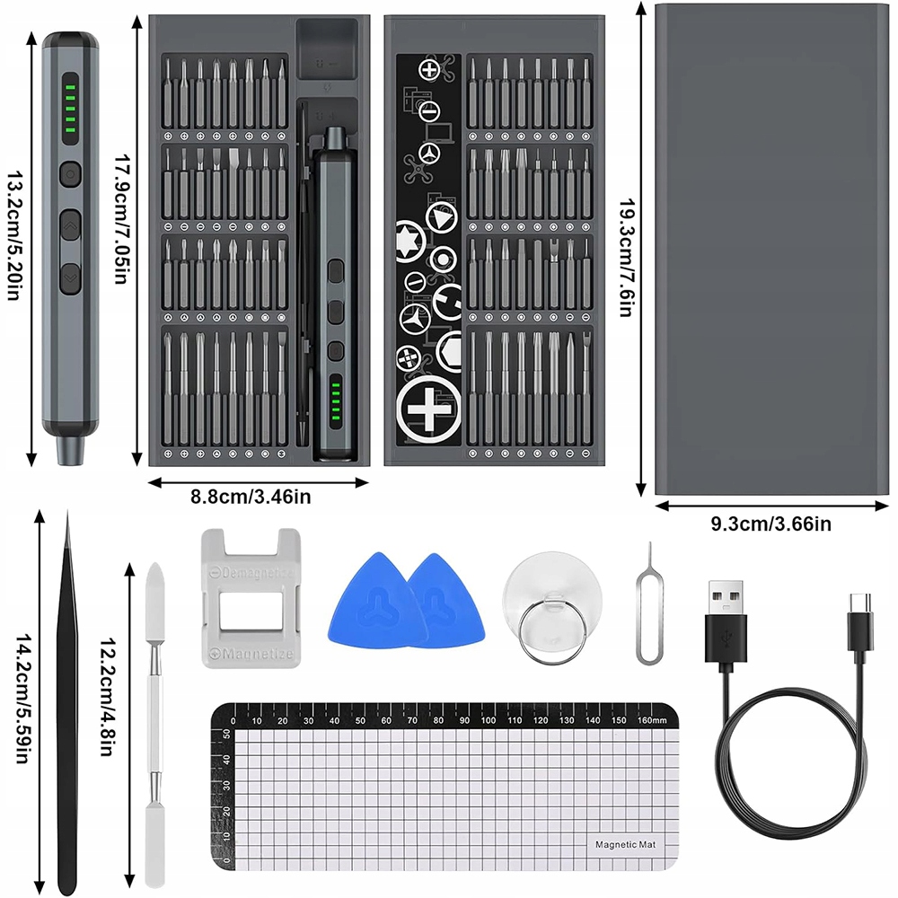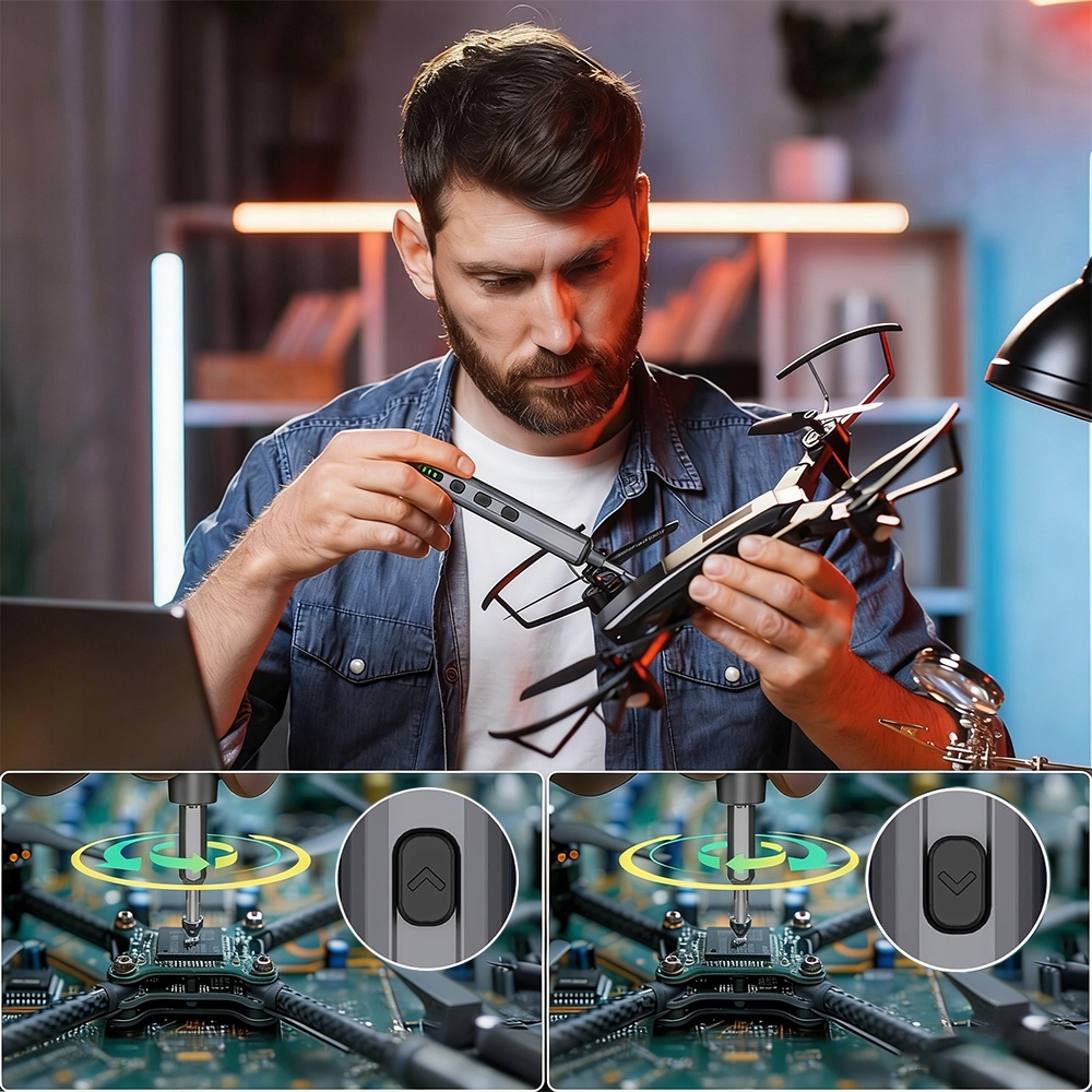 Нагадування: цей набір призначений для делікатних завдань, таких як ремонт електроніки, виготовлення моделей та саморобка. Включає освітлення, контроль крутного моменту, розумне зберігання та повний набір аксесуарів, що робить його практичним і професійним набором інструментів для ентузіастів технологій, механіків і майстрів.