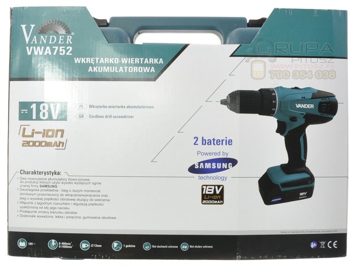 Просматривая «Шуруповерт Vander акумуляторний 18 В VWA752», вы можете быть уверены, что данный товар из каталога «Беспроводные шуруповерты» будет доставлен из Польши и проверен на целостность. В цене товара, указанной на сайте, учтена доставка из Польши. Внимание!!! Товары для Евросоюза, согласно законодательству стран Евросоюза, могут отличаться упаковкой или наполнением.
