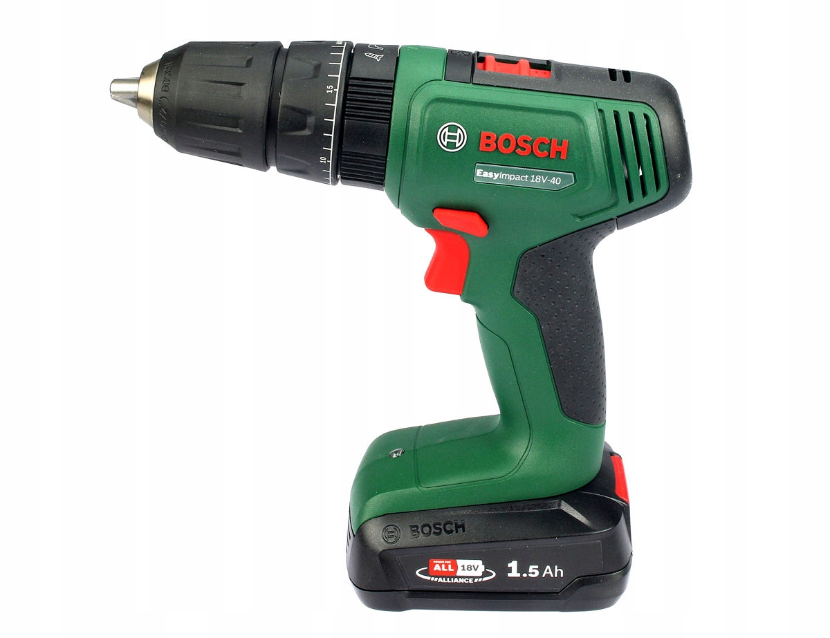 Дриль-шуруповерт EasyImpact 18V-40 від BOSCH — це спеціалізований пристрій із дуже високим крутним моментом до 36 Нм. Призначений для закручування болтів і шурупів, а також для свердління отворів великого діаметру - макс. діаметр свердління в деревині становить 30 мм, а в сталі – 13 мм.
