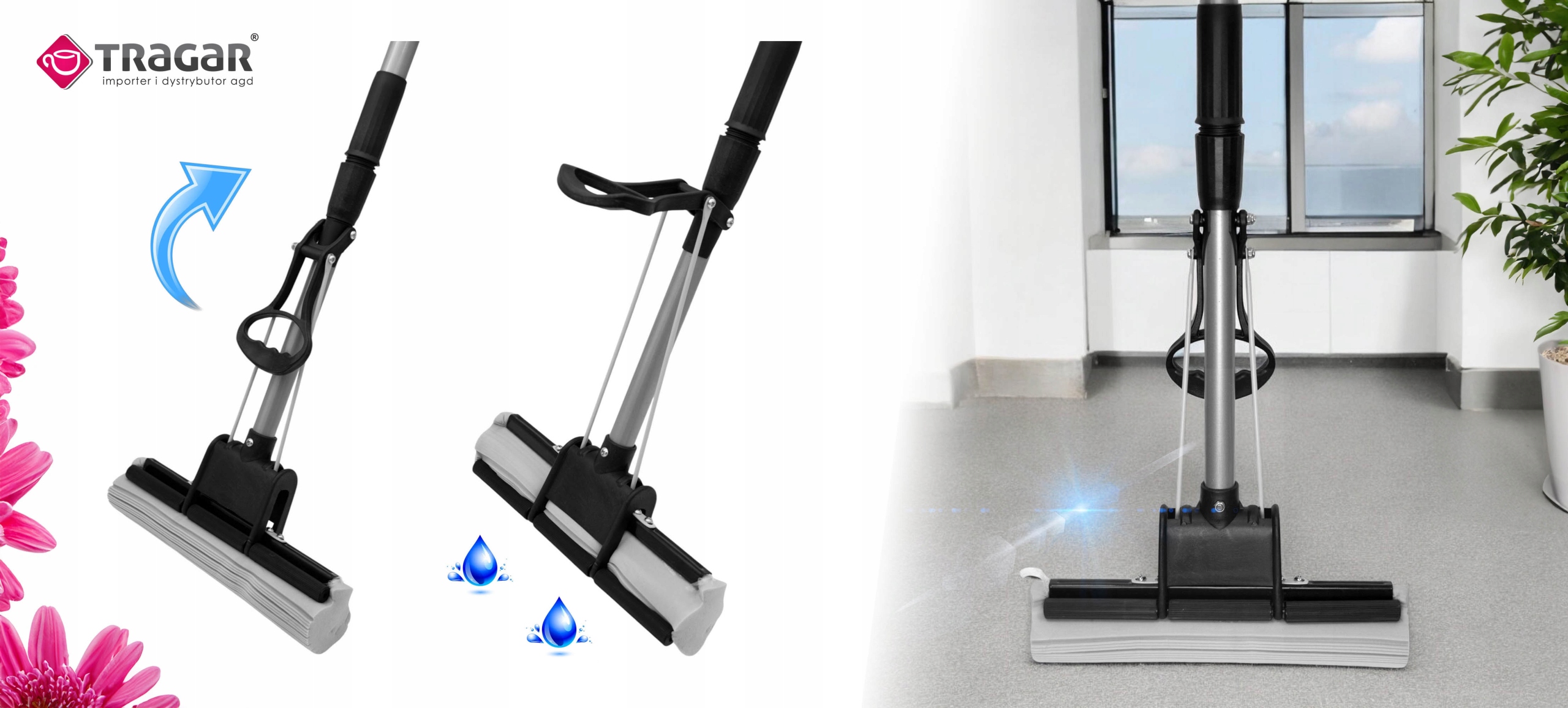 Губка з дуже вбираючою вставкою, яка вбирає до 10 разів більше води, ніж аналогічні швабри інших виробників. Спеціальна система подвійних роликів, з'єднаних з важелем, дозволяє ретельно віджимати воду зі швабри, не змочуючи руки. Він має регульовану висоту ручки, що робить використання швабри легким для кожного. Легко видаляє забруднення навіть без використання миючих засобів.