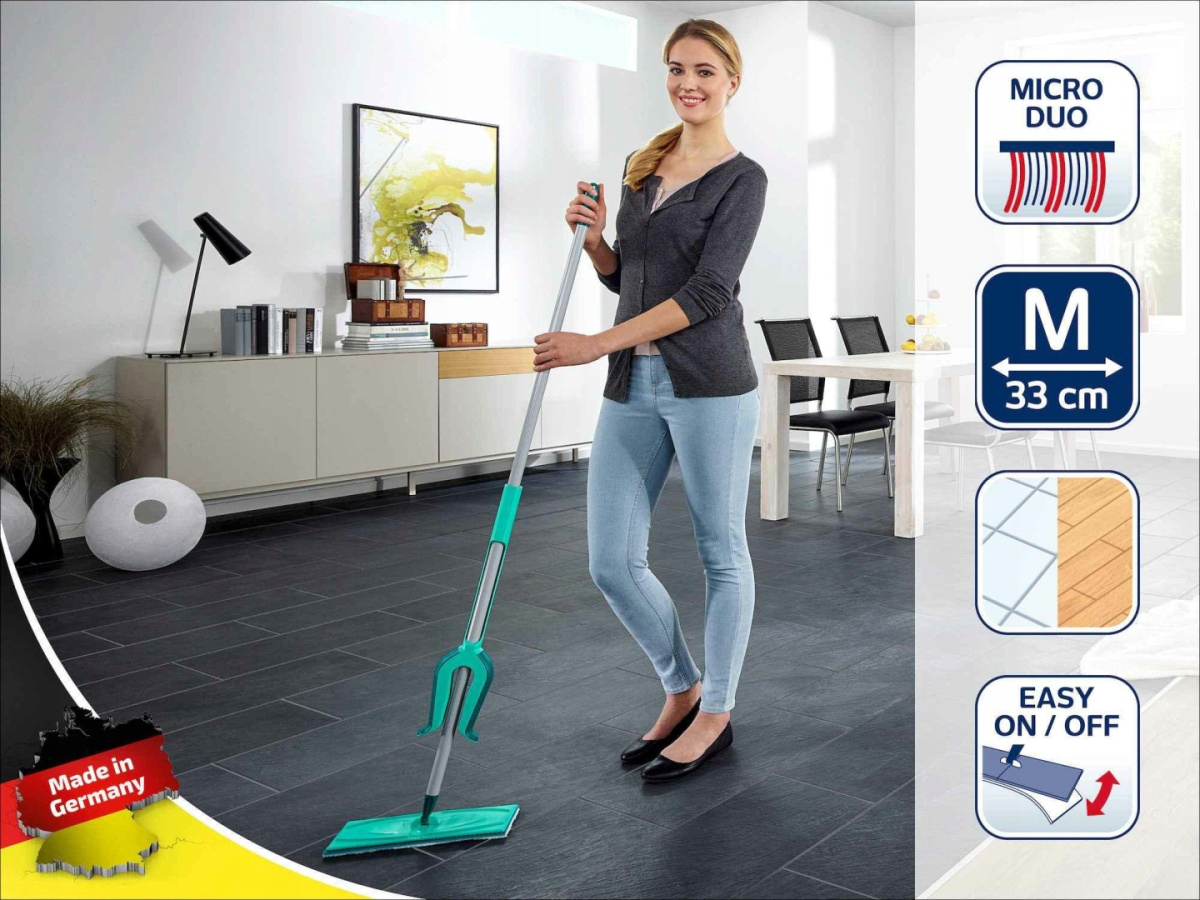Швабра Picobello M з чохлом micro duo від Leifheit — ідеальне рішення для людей, які цінують комфорт роботи та економію місця. Швабра створена для невеликих квартир - вона займає мало місця і полегшує повсякденну роботу. Гнучке з'єднання на 360° дозволяє ефективно очищати кути, сходи та важкодоступні поверхні під меблями. Швабра ідеально підходить для миття будь-яких поверхонь. Для цього не потрібне спеціальне відро, а віджимний механізм, встановлений у штанзі, полегшує прибирання. Змінні чохли кріпляться за допомогою липучок і їх можна прати в пральній машині. Це дозволяє підтримувати їх у чистоті, не купуючи їх часто. У комплект входить чохол micro duo.