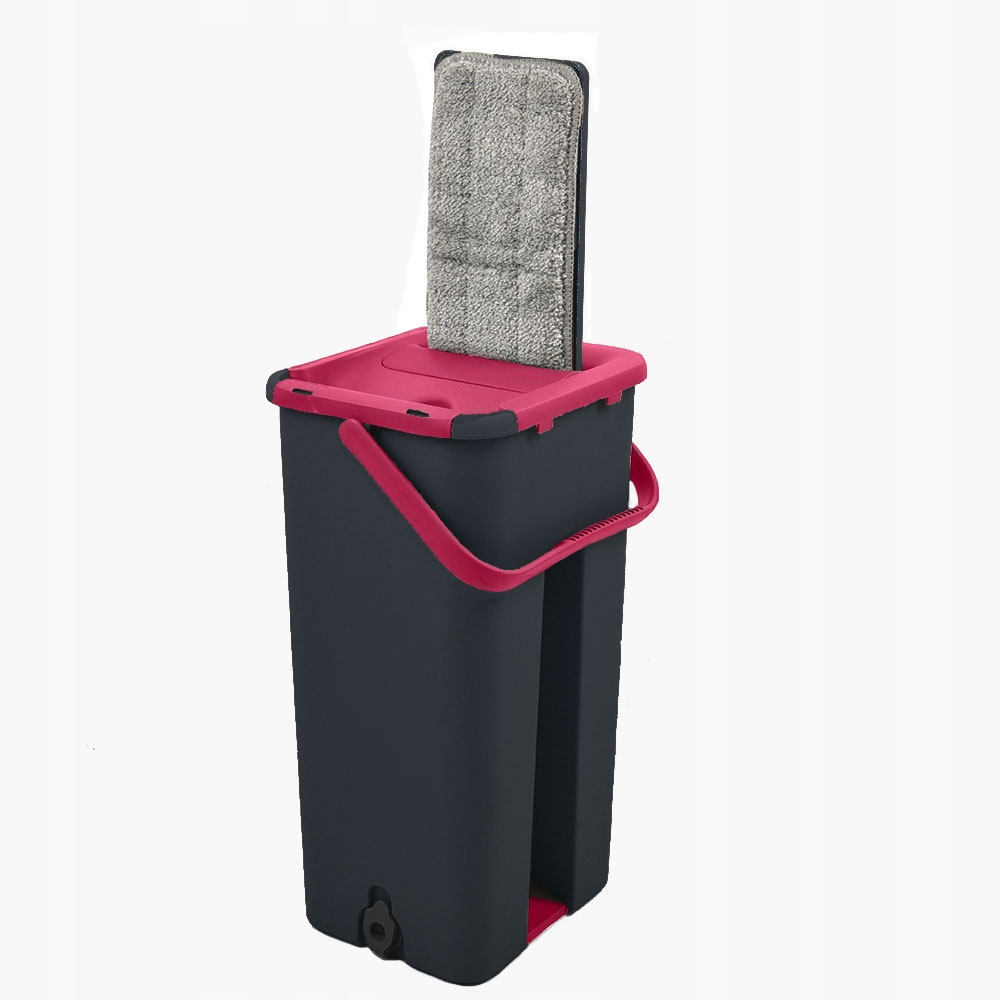 Забудьте про те, щоб забруднити руки чи про необхідність нахиліться, щоб виполоскати і вичавити швабру вручну. Ківш складається з двох камер. Перша камера містить воду і колектор, який очищає чохол швабри від бруду. Друга камера відводить зайву воду з накладки (мікрофібри). Це допоможе уникнути бризок води на підлогу. Зливні пробки в нижній частині відра швабри дозволяють легко спорожняти.