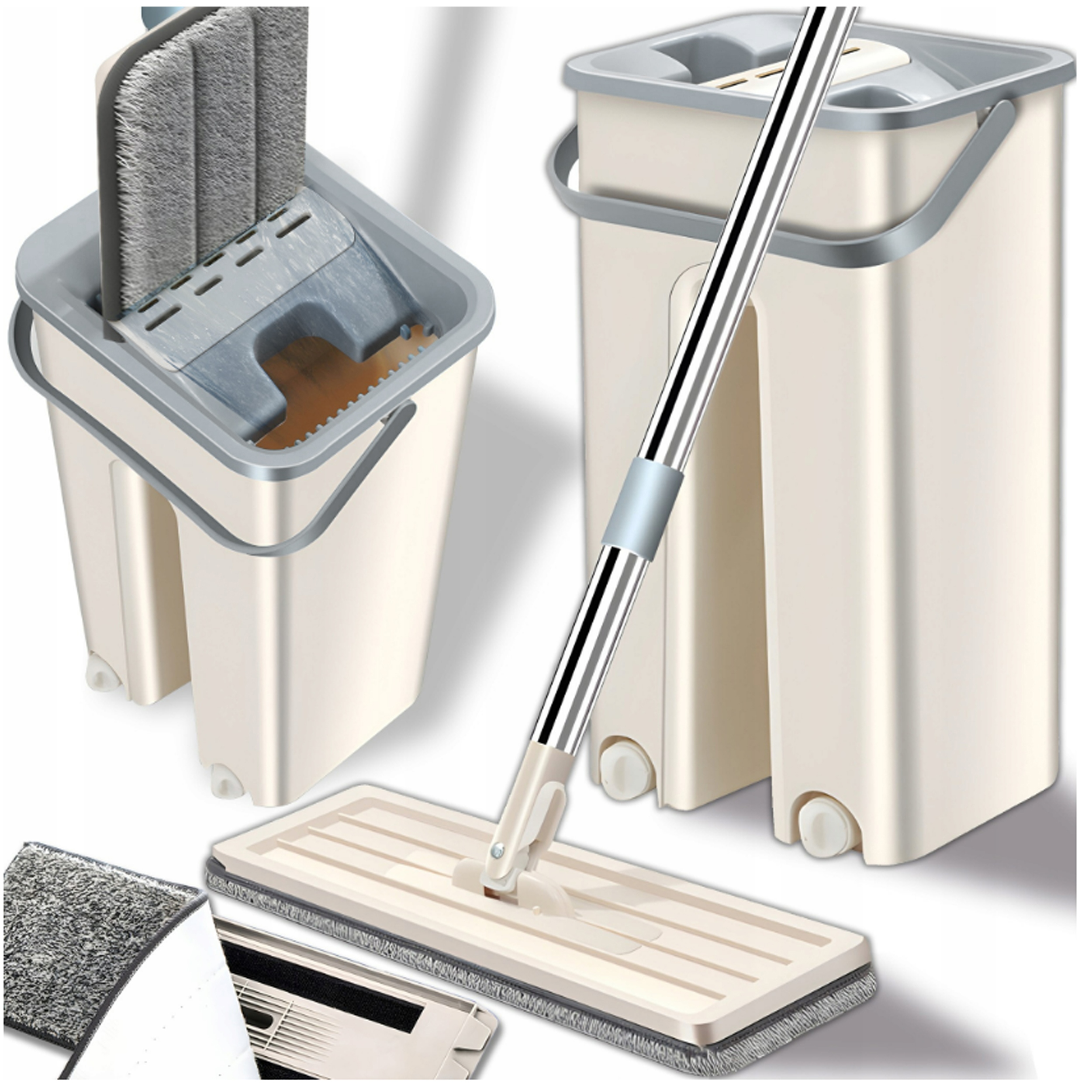 MOP PŁASKI DO MYCIA PODŁOGI OBROTOWY WYCISKACZ DWUKOMOROWY WIADERKO