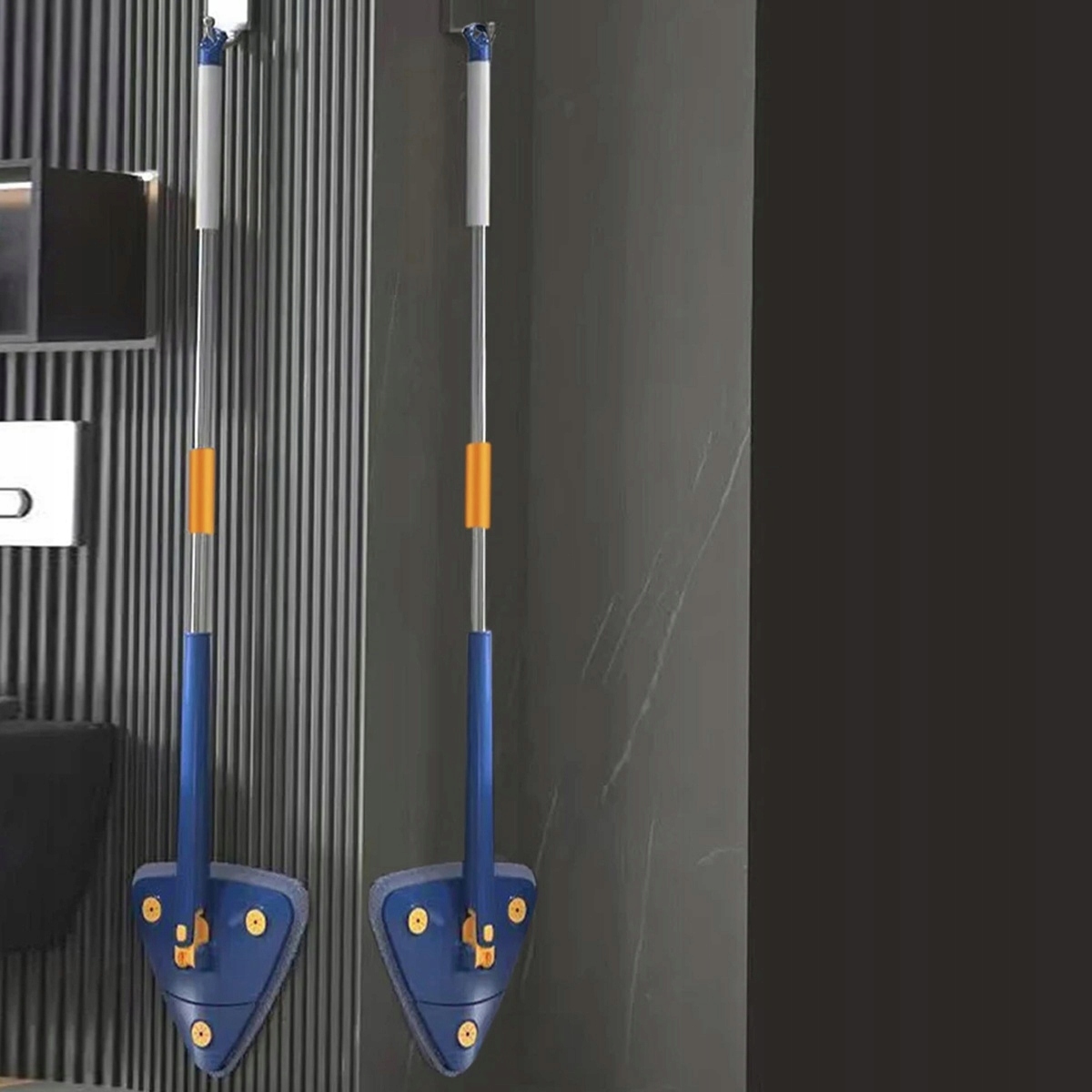 Завдяки своїй трикутній формі наша швабра ідеально пристосовується до країв і кутів, забезпечуючи ретельне очищення навіть у важкодоступних > місцях .