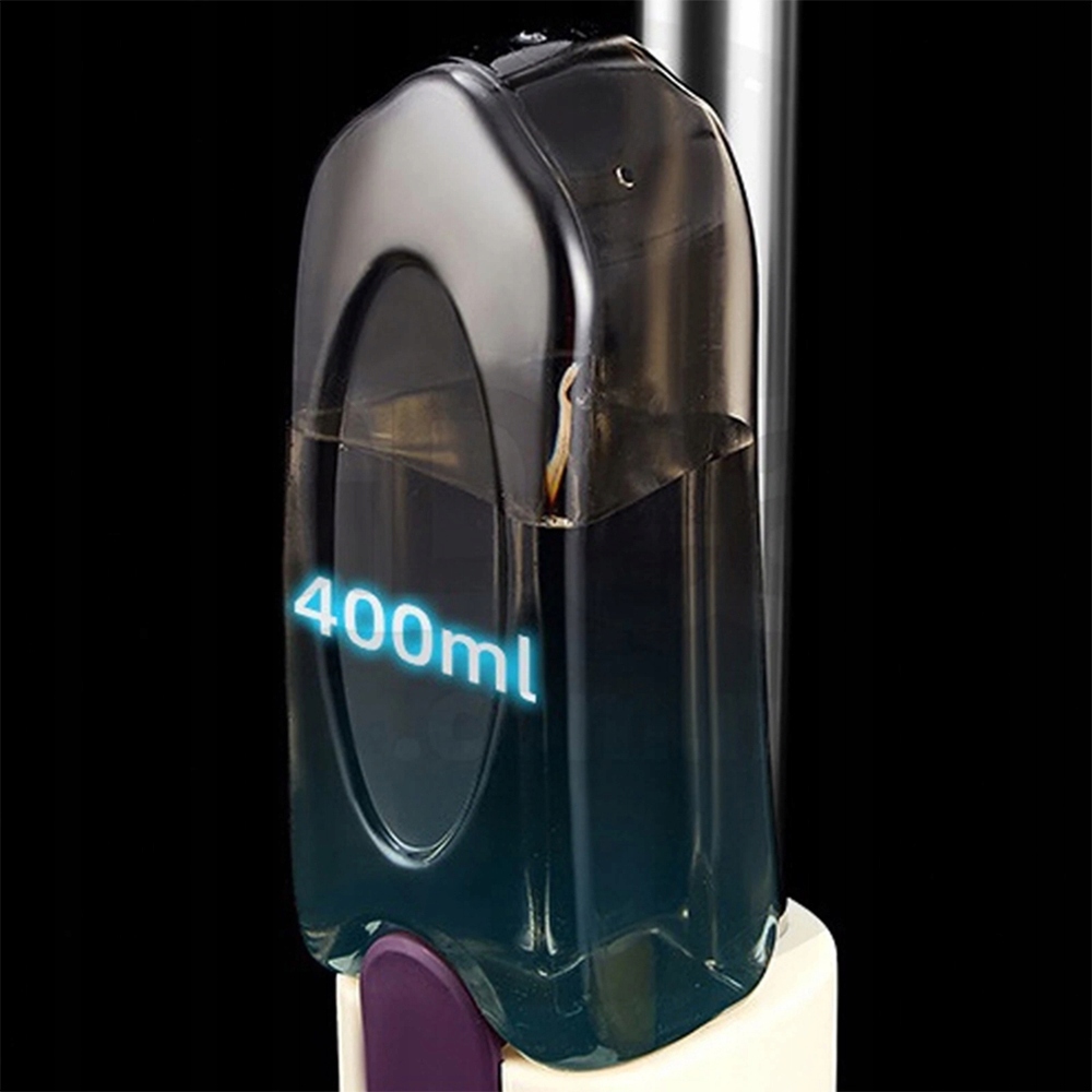 Наша швабра з вбудованим розпилювачем дозволяє рівномірно розподілити воду або миючу рідину без зайвих зусиль! З ємністю 400 мл цього достатньо для безперебійного прибирання.
