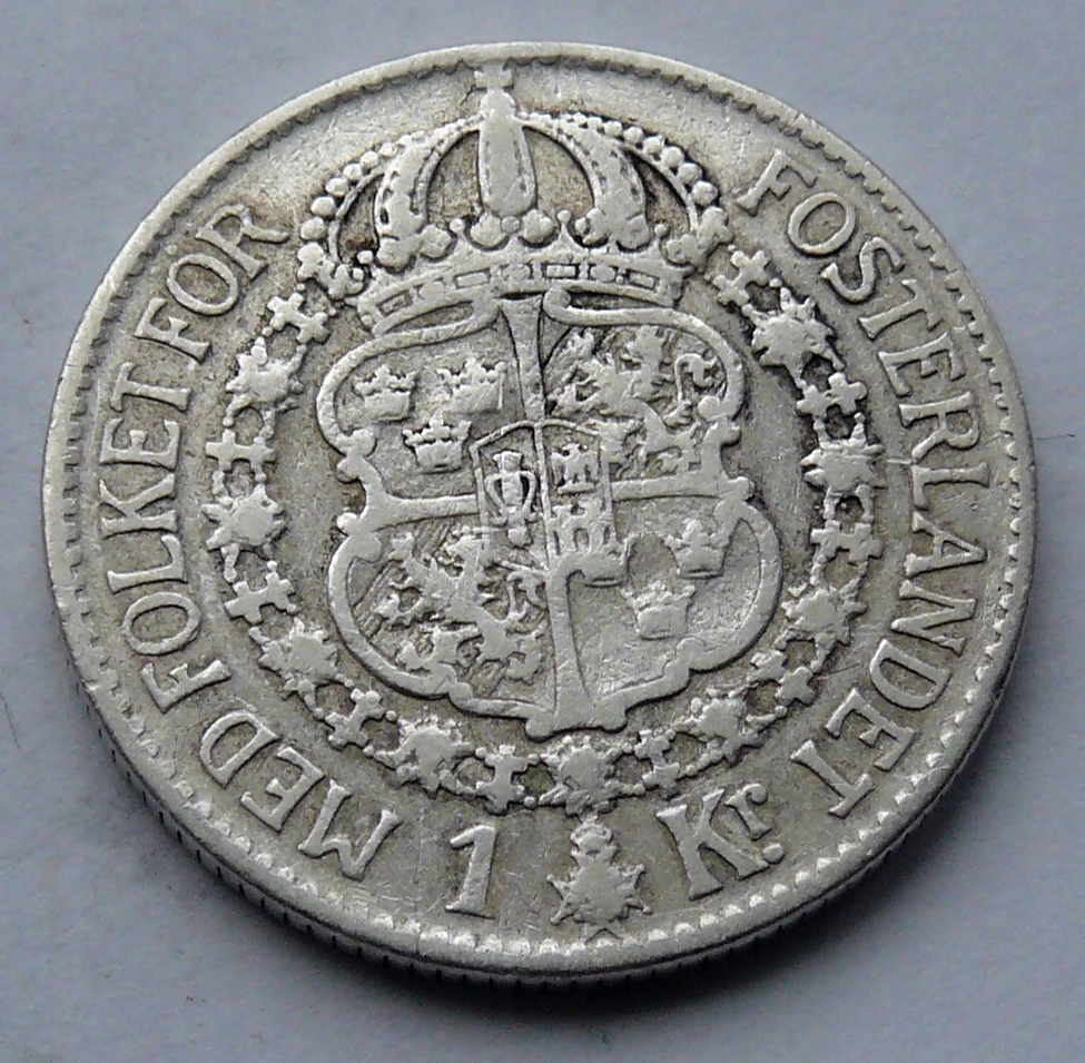 ШВЕЦІЯ - ГУСТАВ V - 1 КРОНА 1930, срібло Ag
