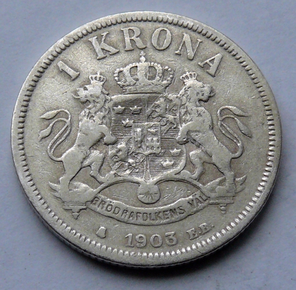 ШВЕЦІЯ - ОСКАР II - 1-ша КОРОНА 1903 - срібло Ag