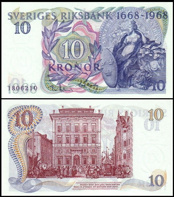 ШВЕЦІЯ, 10 крон 1968 р. вибір 56a