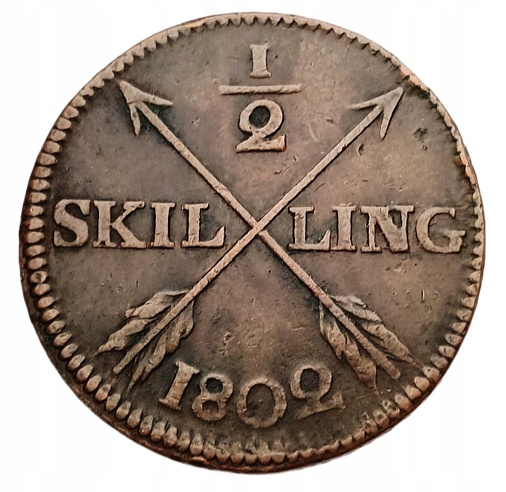 ШВЕЦІЯ 1/2 СКІЛЛІНГА 1802 ГУСТАВ IV АДОЛФ - РІДКІСНІСТЬ