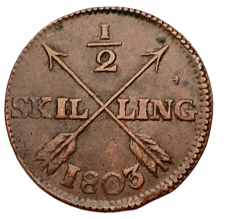 ШВЕЦІЯ 1/2 СКІЛЛІНГА 1803 ГУСТАВ IV АДОЛФ - РІДКІСНІСТЬ