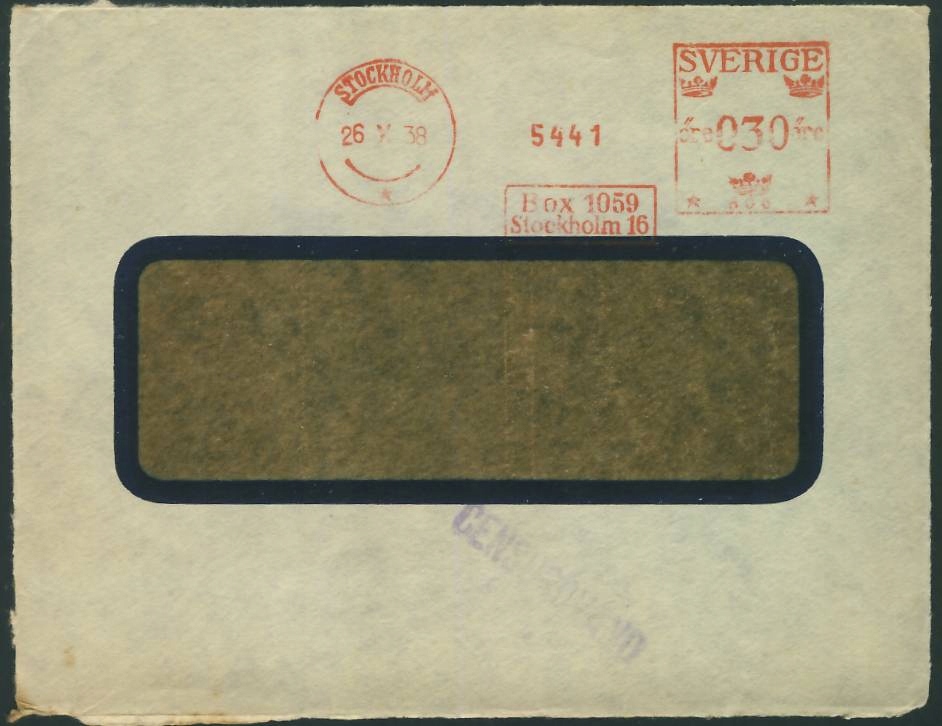 Швеція Стокгольм 1938 - механічний зазор/ цензуровано