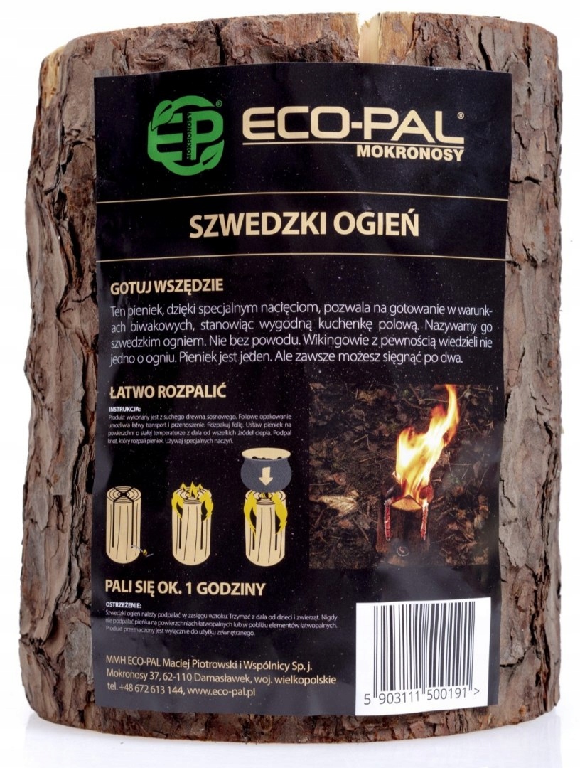Шведський пожежа-це комфортне поле. Завдяки спеціальним скороченням, пень горить зсередини, як природне багаття близько години. Пластикова упаковка дозволяє легко транспортувати та перенести. як паливо