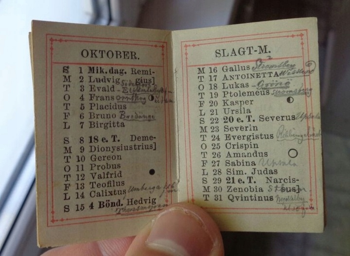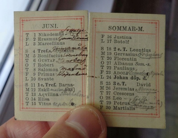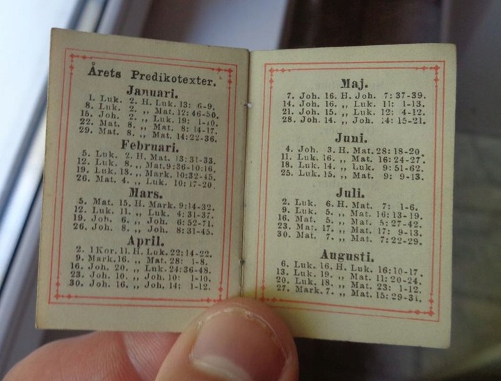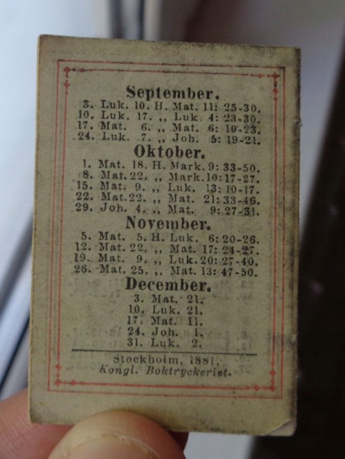 Гарний, витончений кишеньковий календар 1882 року. Експонат виготовлено у Швеції. Має дуже насичену титульну сторінку. Титульна сторінка має дуже насичену червону рамку. Сторінки виставки містять місяці та додаткові записи. Експонат завершено. Рекомендую всім.