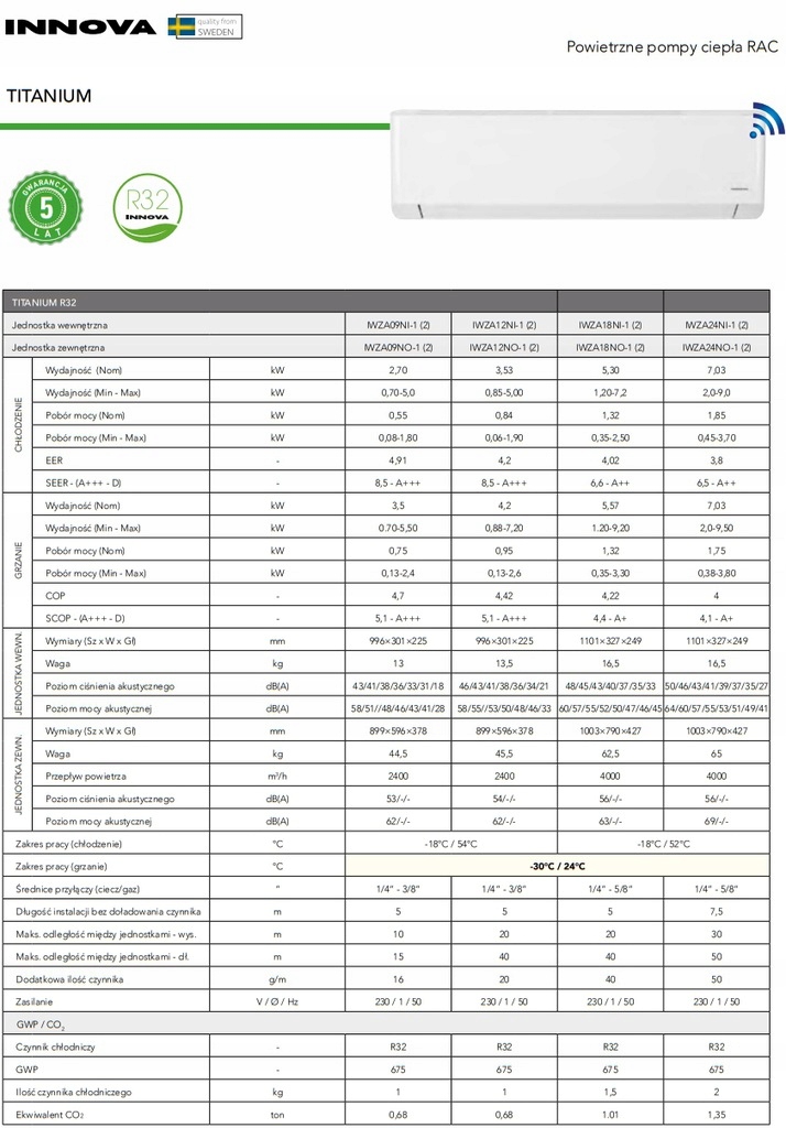 Шведський кондиціонер Innova Titanium 3,5 kW Wi-fi Підігрів -30