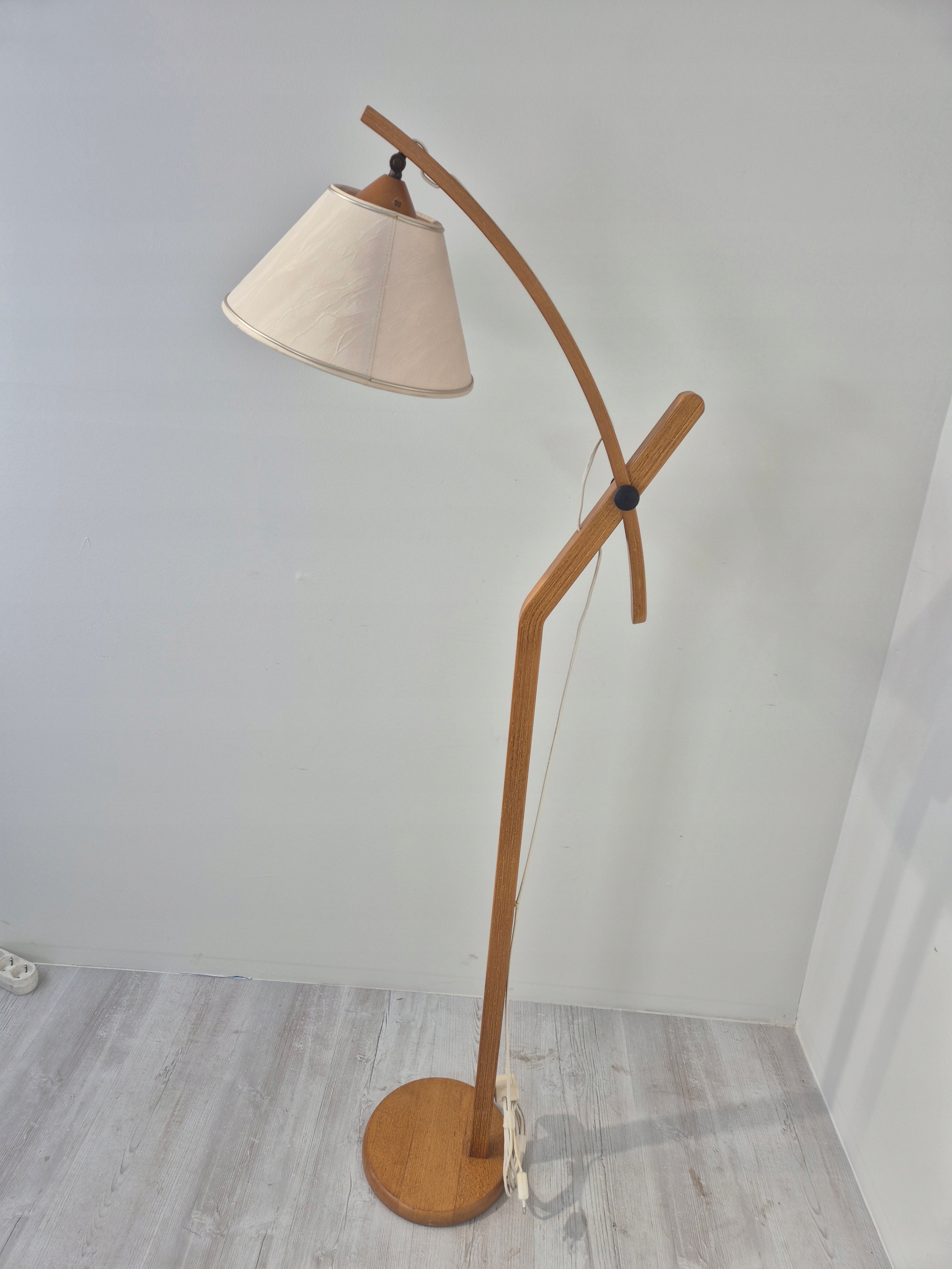 Шведський торшер з тикового дерева, сканді дизайн