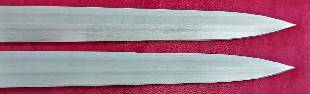 Піхви без дірок, одна невелика вм'ятина в нижній частині. На м'ячі є невелика мітка. Направляюча справна, клинок добре лягає в піхви.