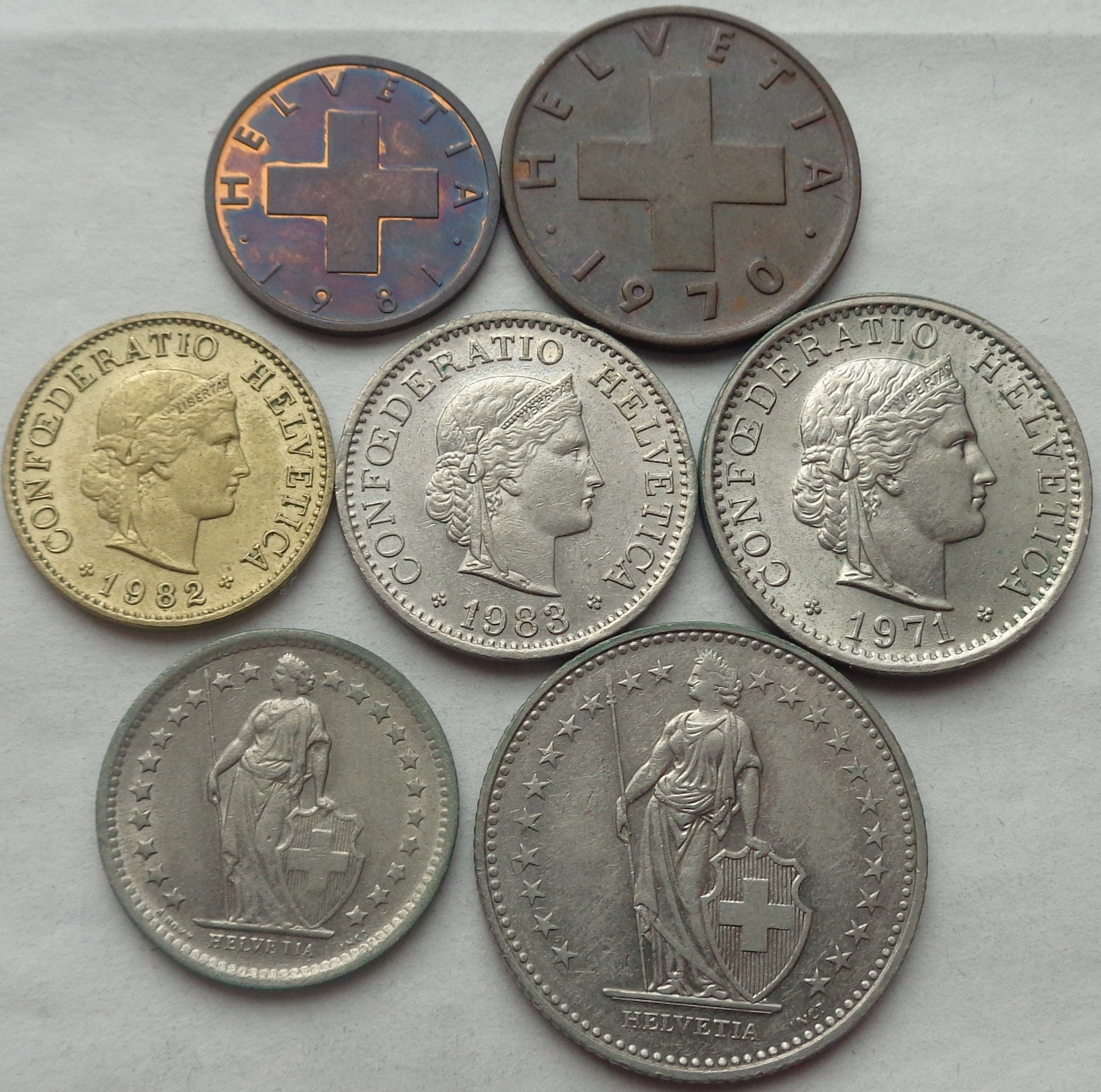 ШВЕЙЦАРІЯ - 1 раппен / 1 франк 1970 / 1994 SET