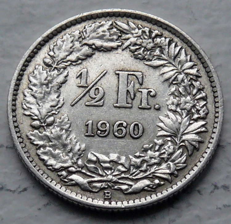 Швейцарія - 1/2 Франка 1960 - Б - Срібний АГ