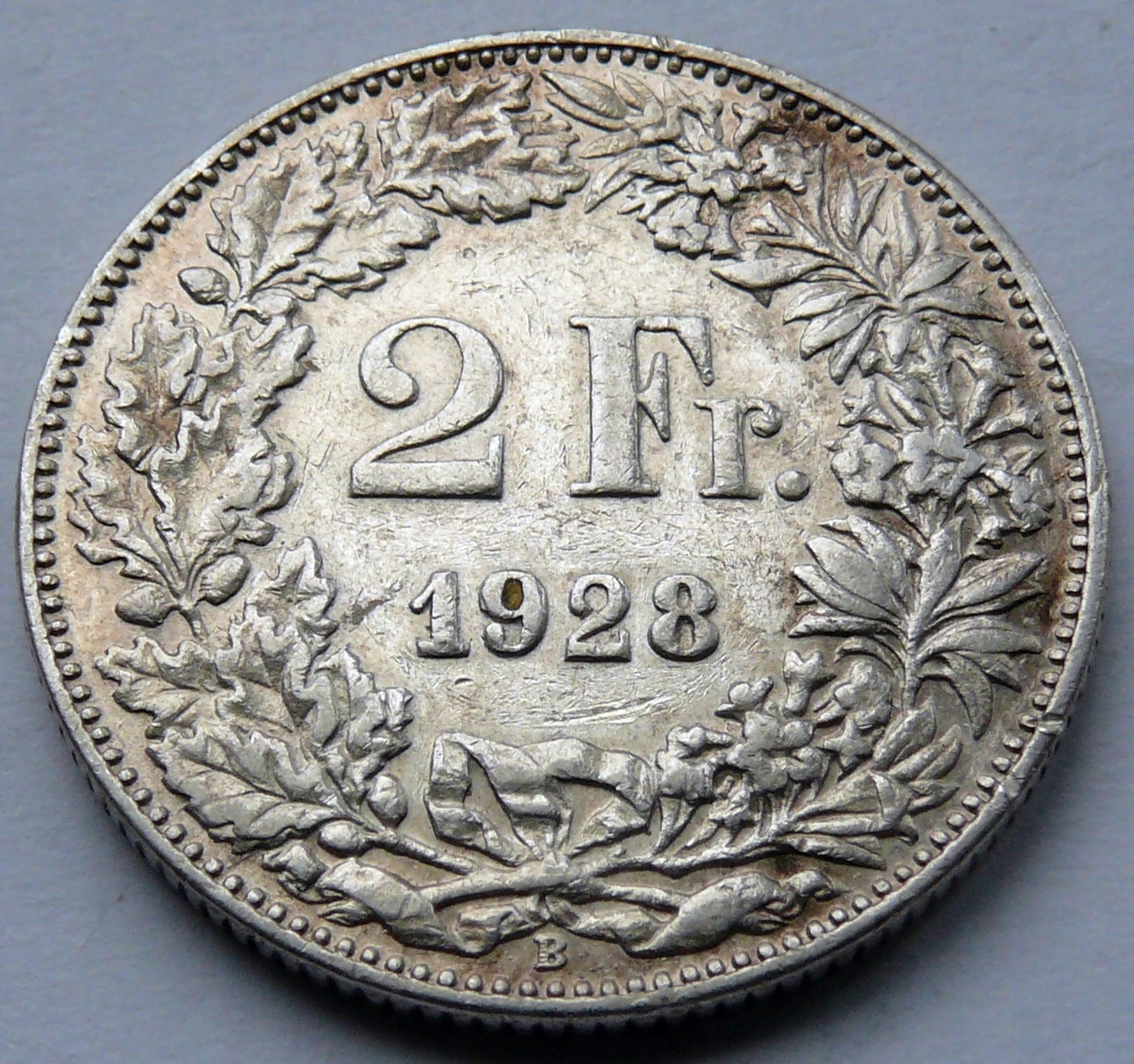 ШВЕЙЦАРІЯ - 2 франка 1928 - B - срібло Ag