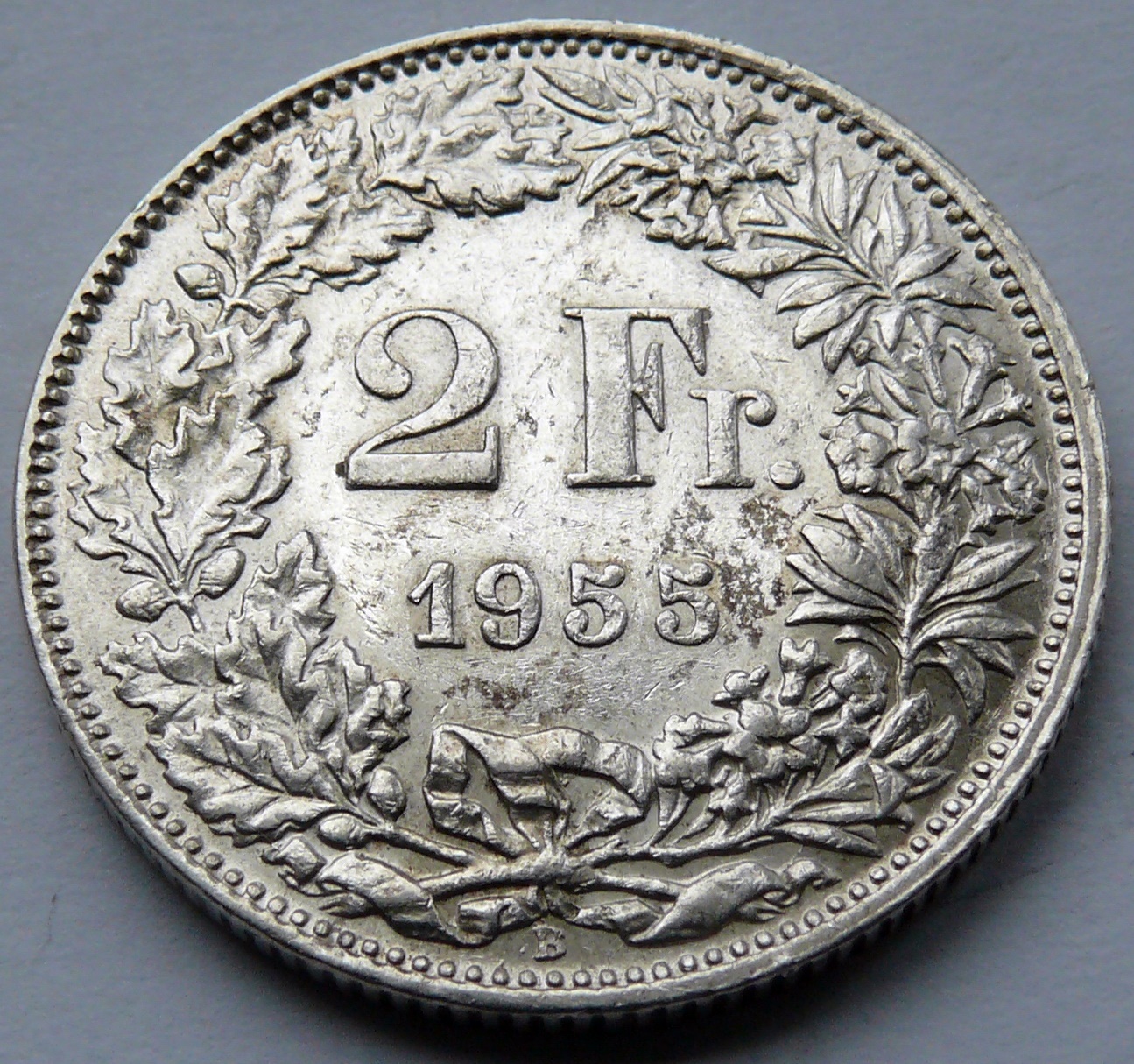 ШВЕЙЦАРІЯ - 2 франка 1955 - B - срібло Ag