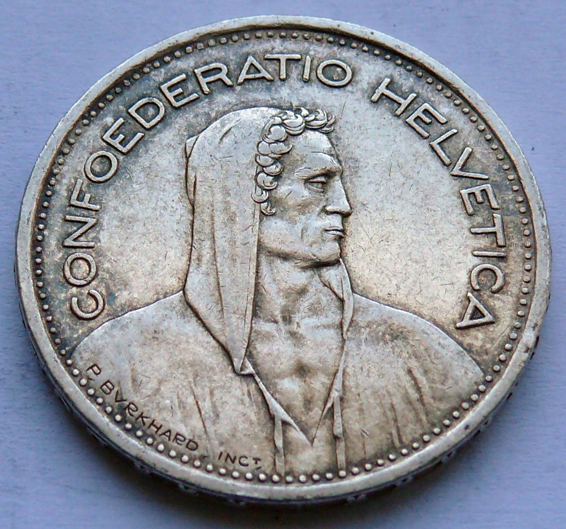 ШВЕЙЦАРІЯ - 5 франків 1954 - B - срібло Ag (3)