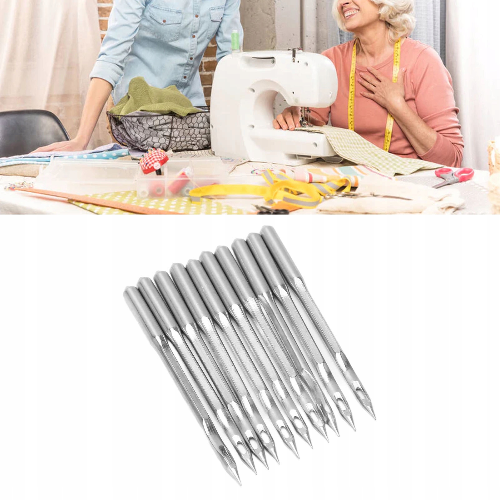 5. Специфікація та розмір: 10pcs швейна машина сталеві голки на упаковку, довжина 5,9 см/2,3 дюйма, товщина - 3,9 мм/0,15 дюйма.