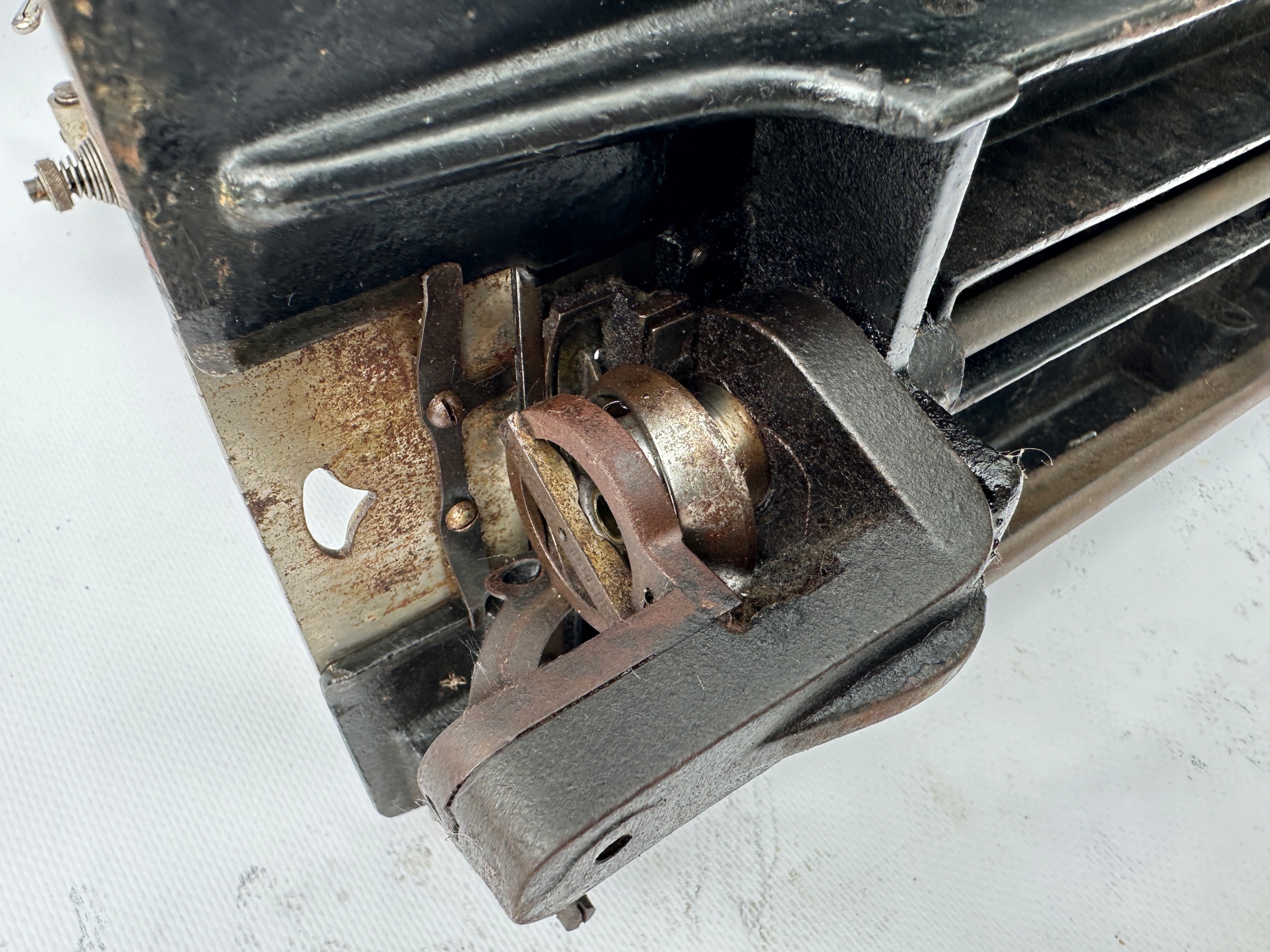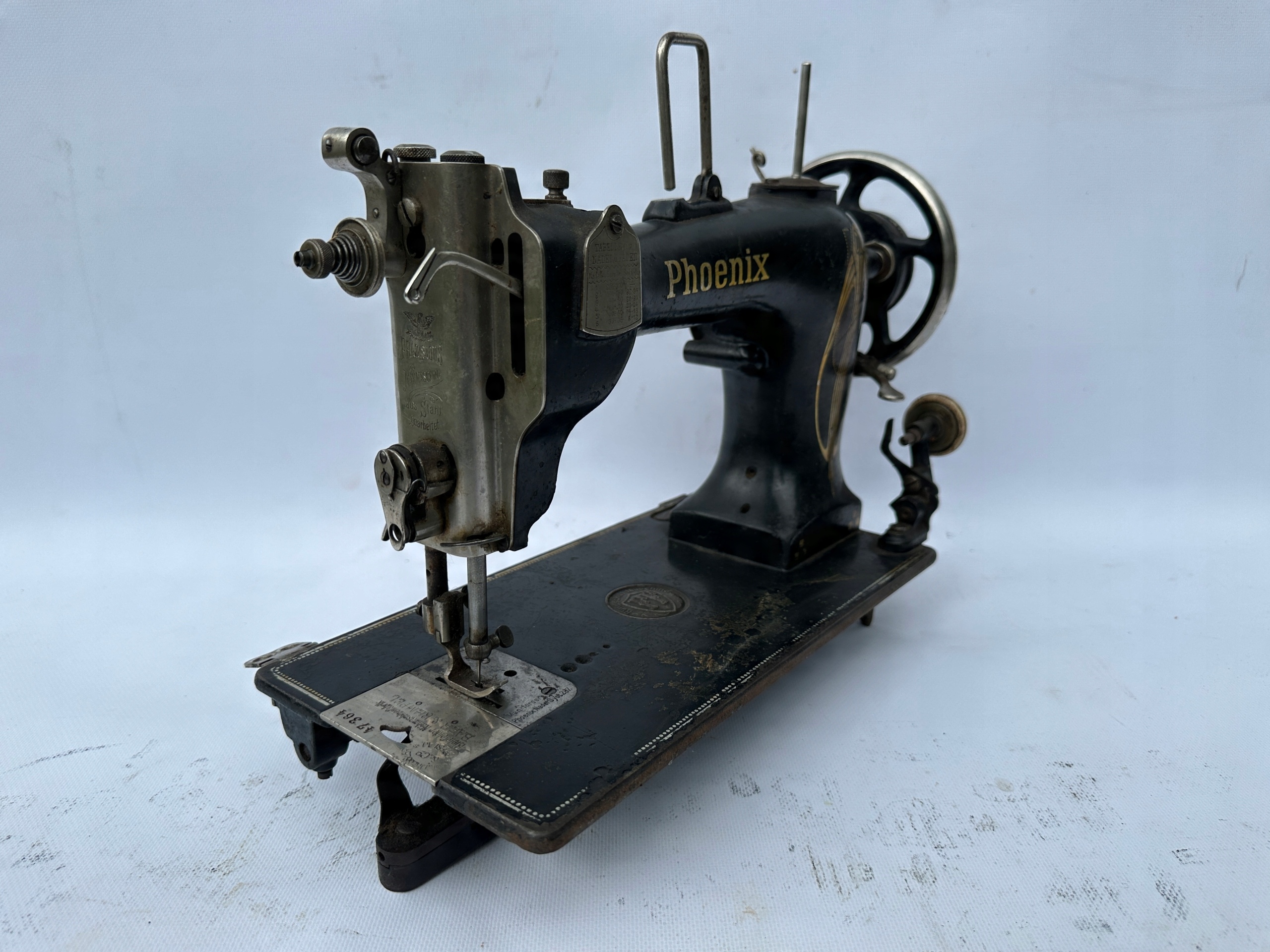 Предметом продажу є стара шпульна швейна машина PHOENIX з серійним номером 47364. Справжній унікальний виріб з позначкою довоєнного Вроцлав - лип. DRESSLER & Co БРЕСЛАУ Bielefelder Nahmaschinenfabrik BEAR & REMPEL. PRAZISIONS NAHMASCHINE aus Stahl gearbeitet. Легкий доступ до механізму після відкручування 1 гвинта ззаду. Машина виглядає справною - колесо обертається, голка працює. Також зберігся оригінальний барабан (напис D.R Patent на кришці барабана). Якщо ви шукаєте щось оригінальне, цей аукціон саме для вас.