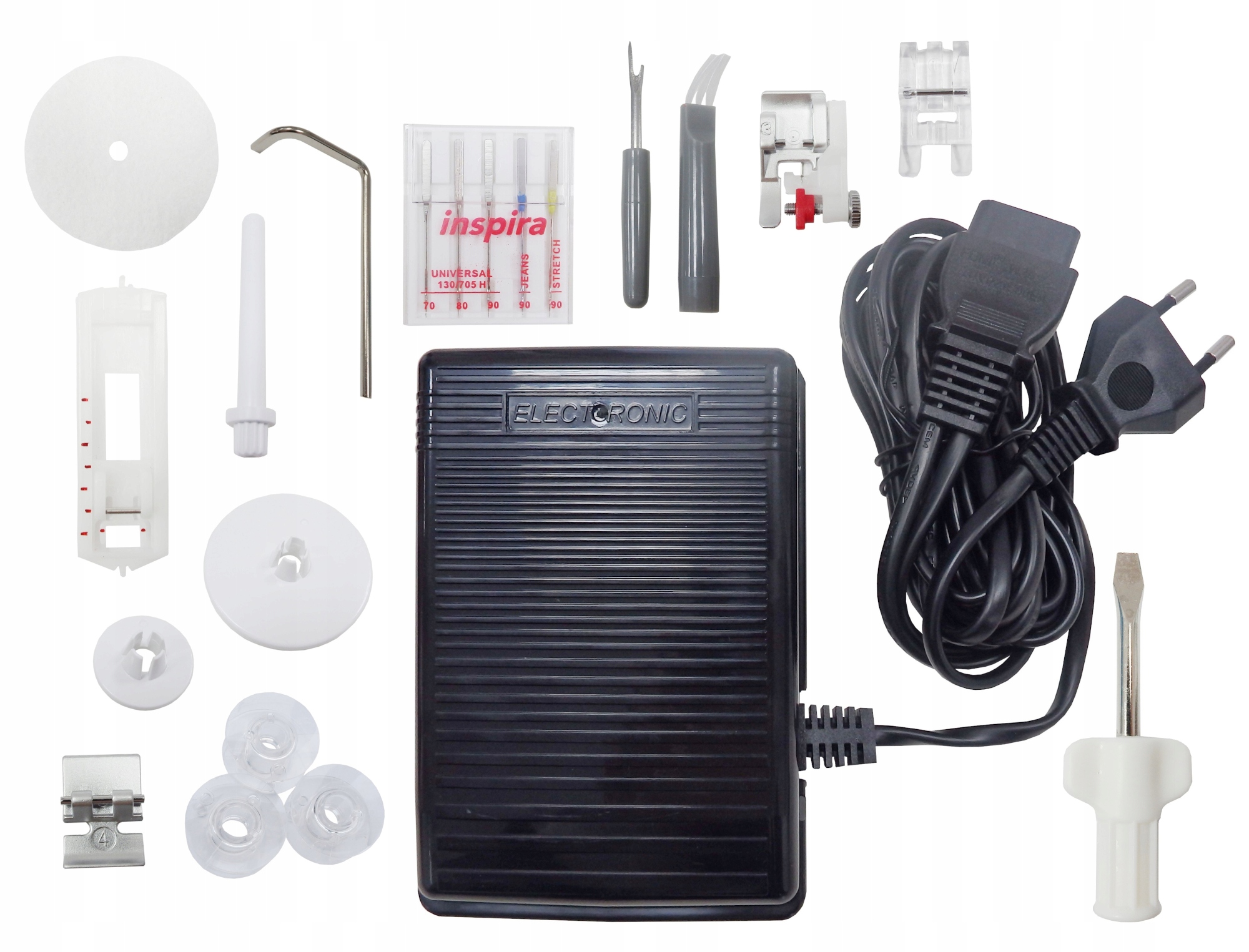 ◾ Машина також оснащена ниткорізом, який розміщено в корпусі машини. Практичний контейнер для аксесуарів дозволить нам зберігати основне обладнання машини без необхідності носити їх у додатковій сумці чи сумці, а транспортувати всю машину можна за допомогою жорсткої валізи, яка також захистить машину від пошкоджень.